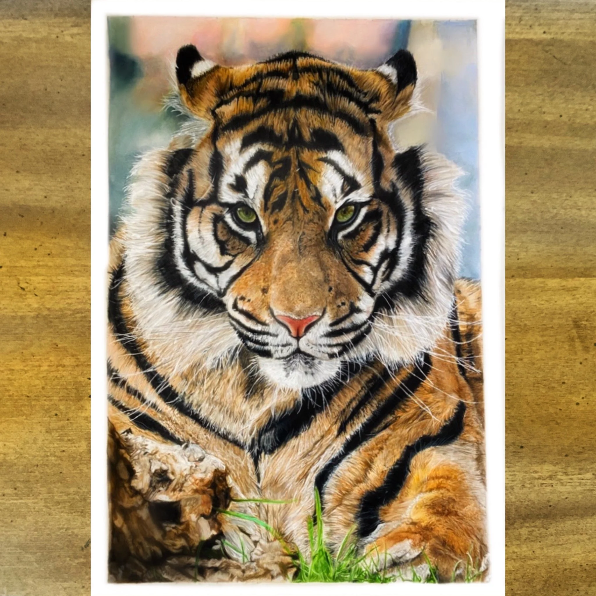 This is an extensive hyper realism piece of a tiger meant to capture the magnificence of the creature in all its glory.