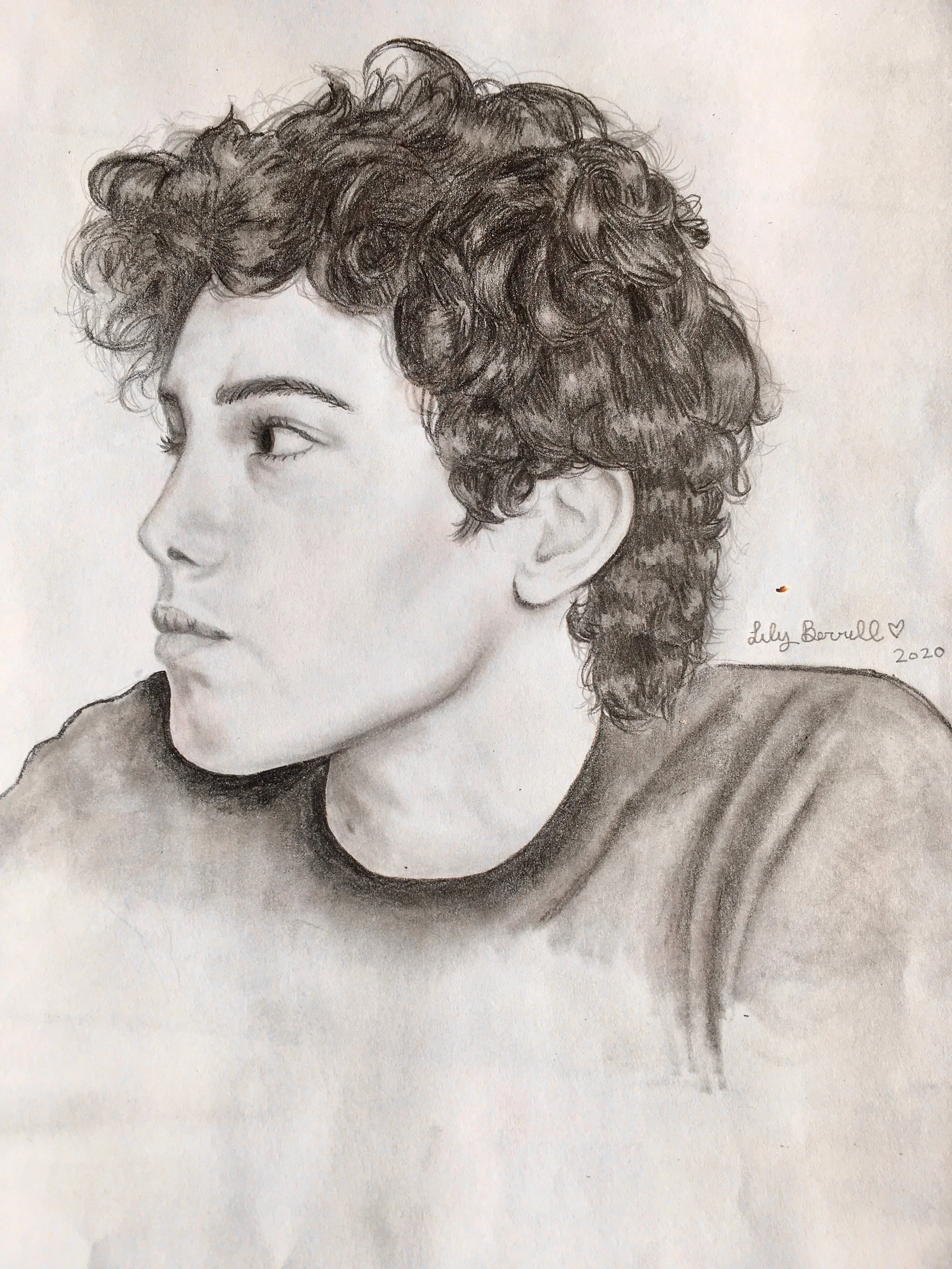 “Solly” is a portrait of a friend from school. I was inspired to draw him as he is a particularly kind and funny person. Like other friends, I have not seen him since February.
