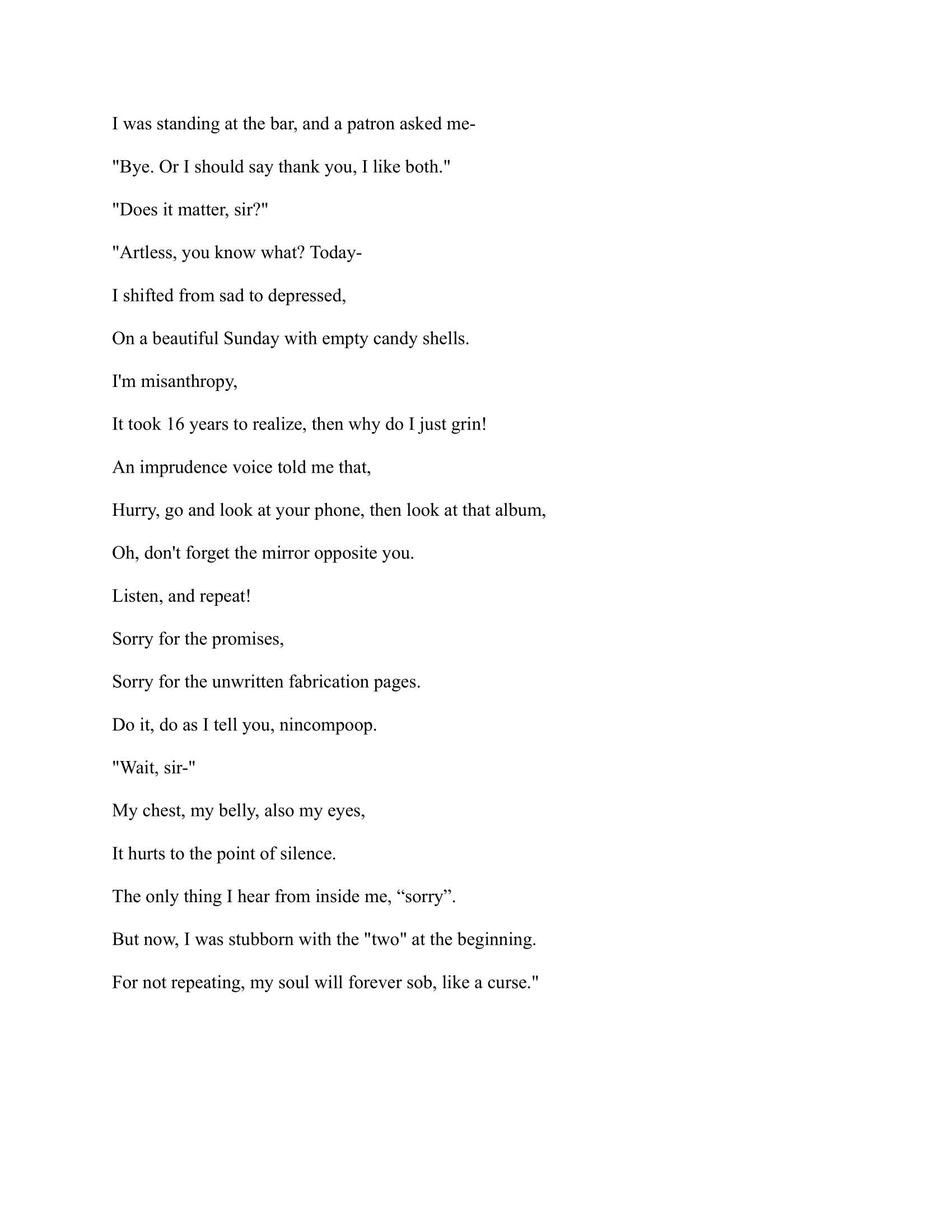 The process of writing the work was during a difficult time for me, I put my thoughts and feelings into this work.