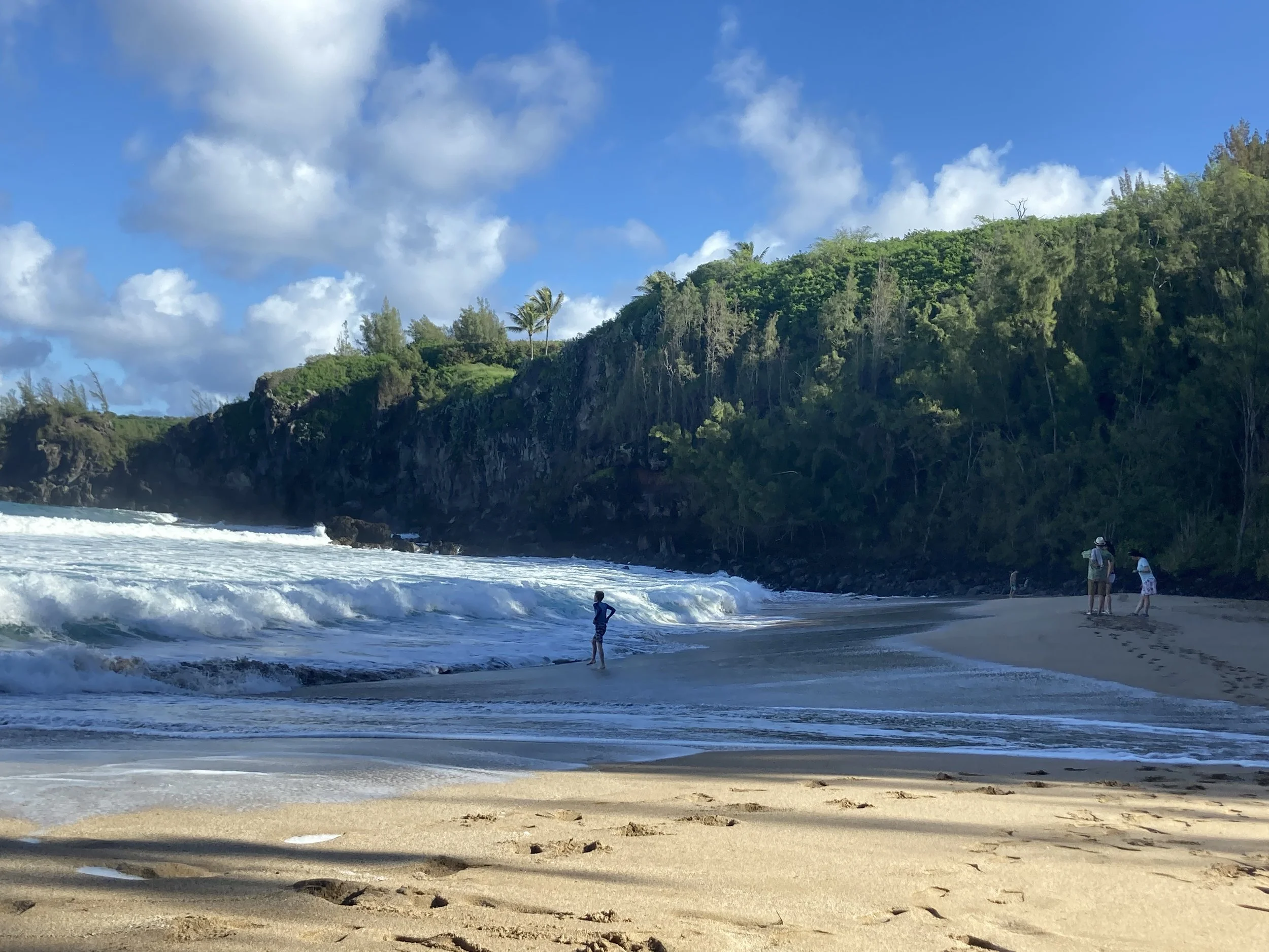 This photograph was taken on Maui at a tucked away beach known as Slaughter House. When we arrived after a walk through a jungle, one could see the cliffs stretching out toward the horizon. The water was also choppy and bright blue, thus contrasting nicely with the blue sky. But the main thing that got me to envision the photo was different biospheres of the jungle and beach coming together making it feel secluded and almost like a secret.