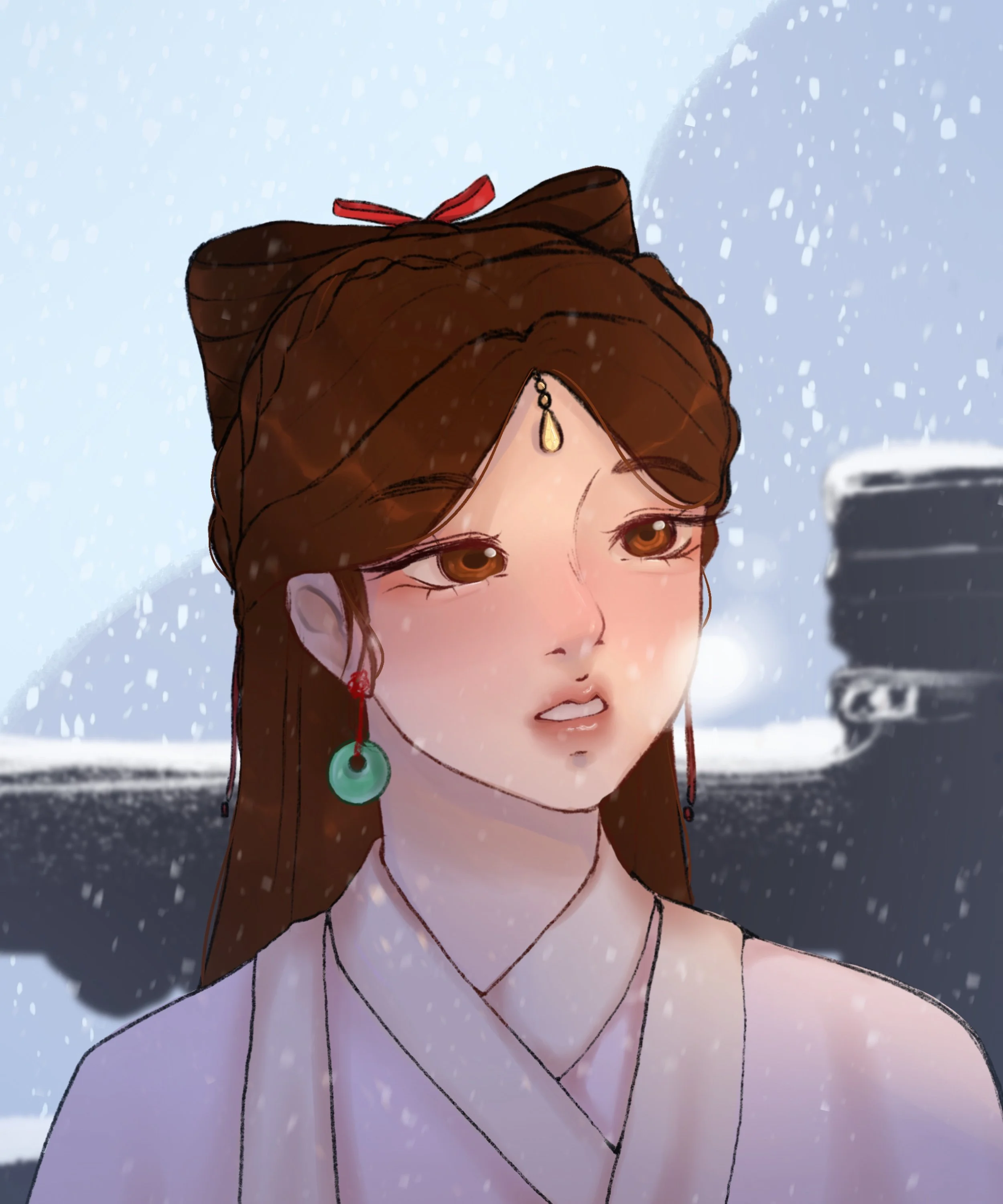 A young lady takes a stroll around the garden and realizes its colder than she expected. I thought that it would be nice to have Chinese resemblance in the artwork.