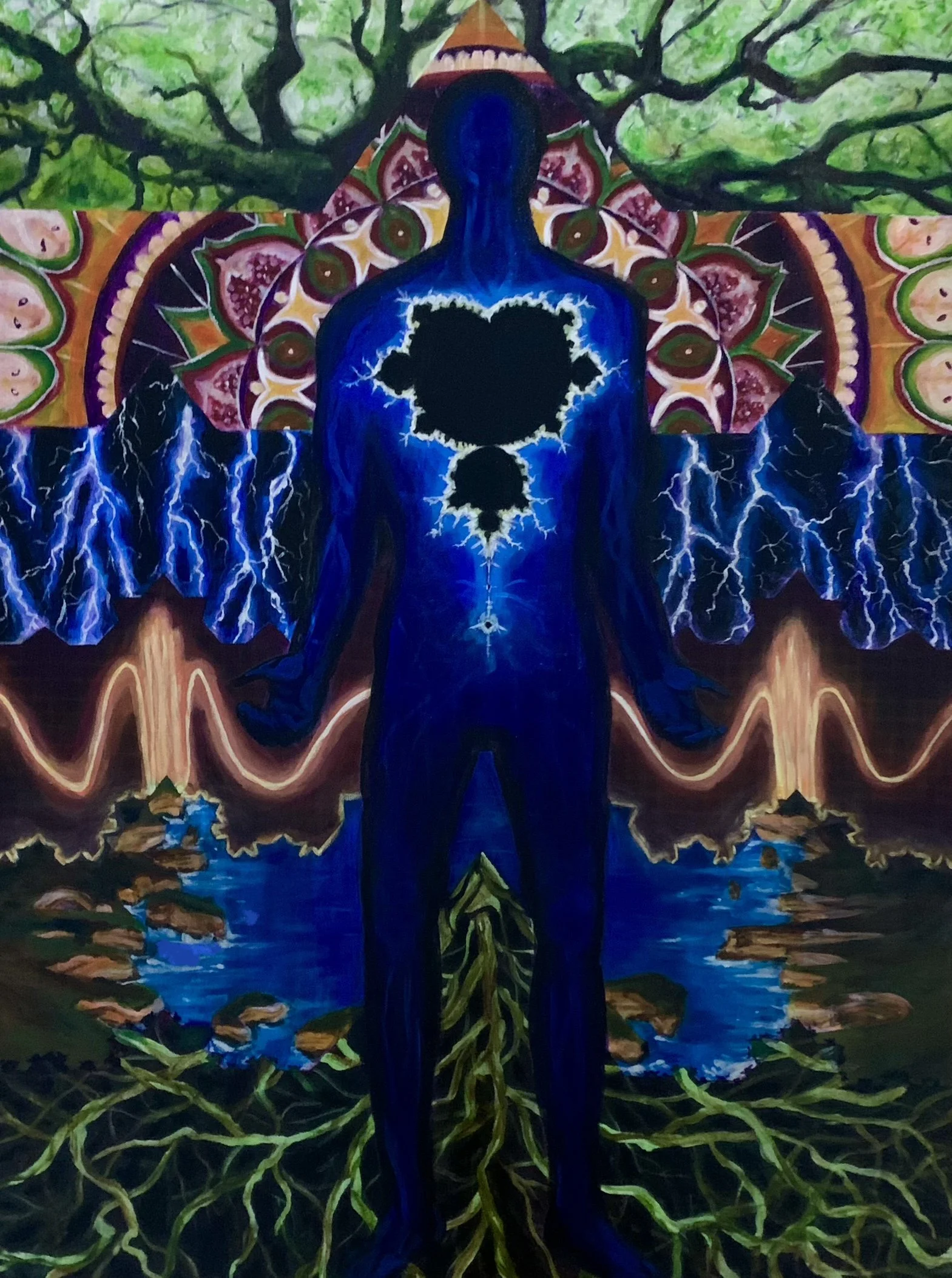 Math is a universal truth of creation. Fractals are geometric figures that get infinitely more complex as you zoom in. The Koch snowflake, Mandelbrot set, oscillating graph, and other fractals construct the entirety of the piece. However, at the center of it all is the human person. Without us, who would be the one zooming in and discovering these concepts? Just as coastlines, tree lines, and the very veins beneath our skin grow infinitely complex as you look closer, so does the lived experience of a person.