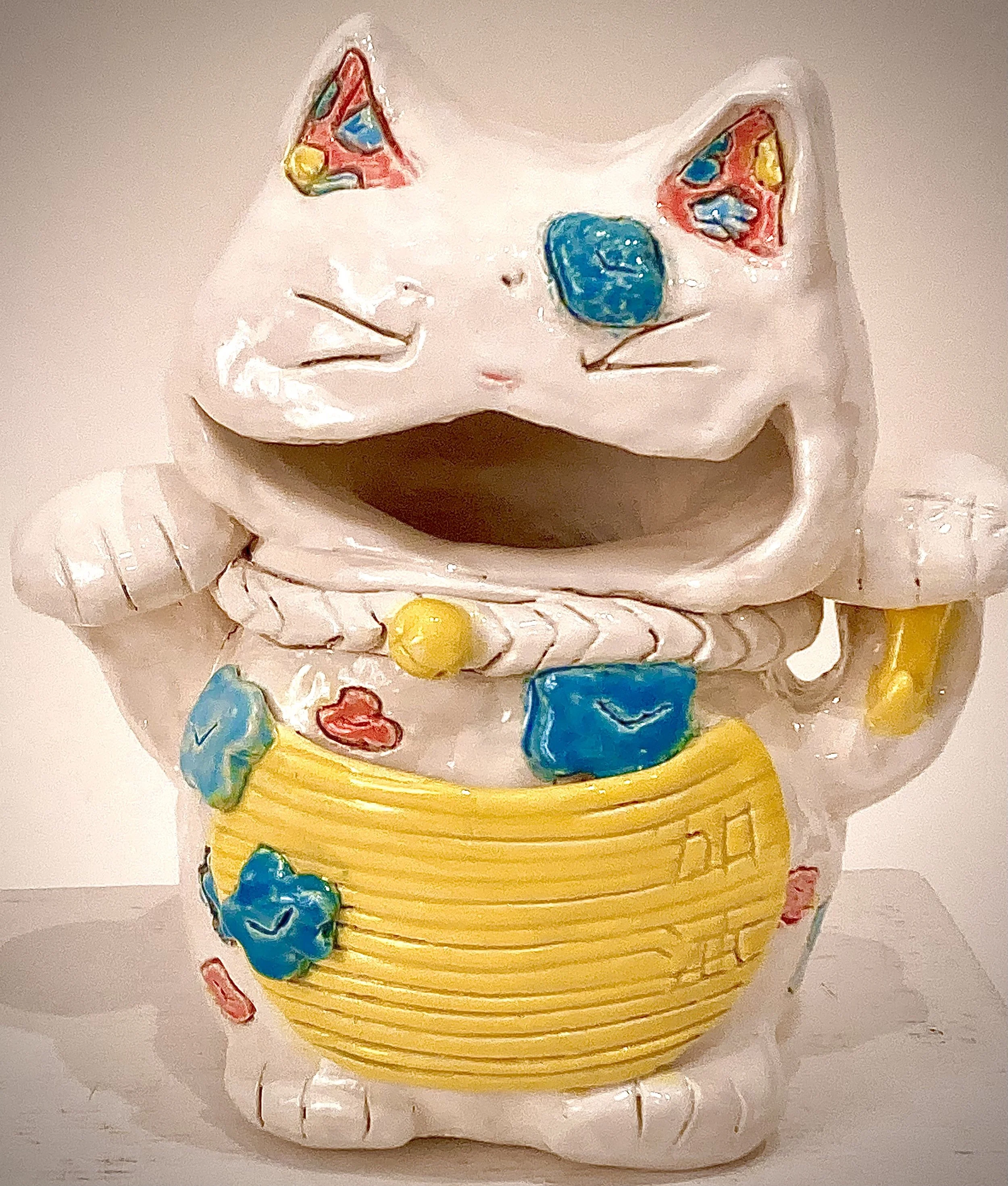 My artwork is a 3 dimensional, functional, hollowed out cat sculpture depicting the joy I get when I see a cat.