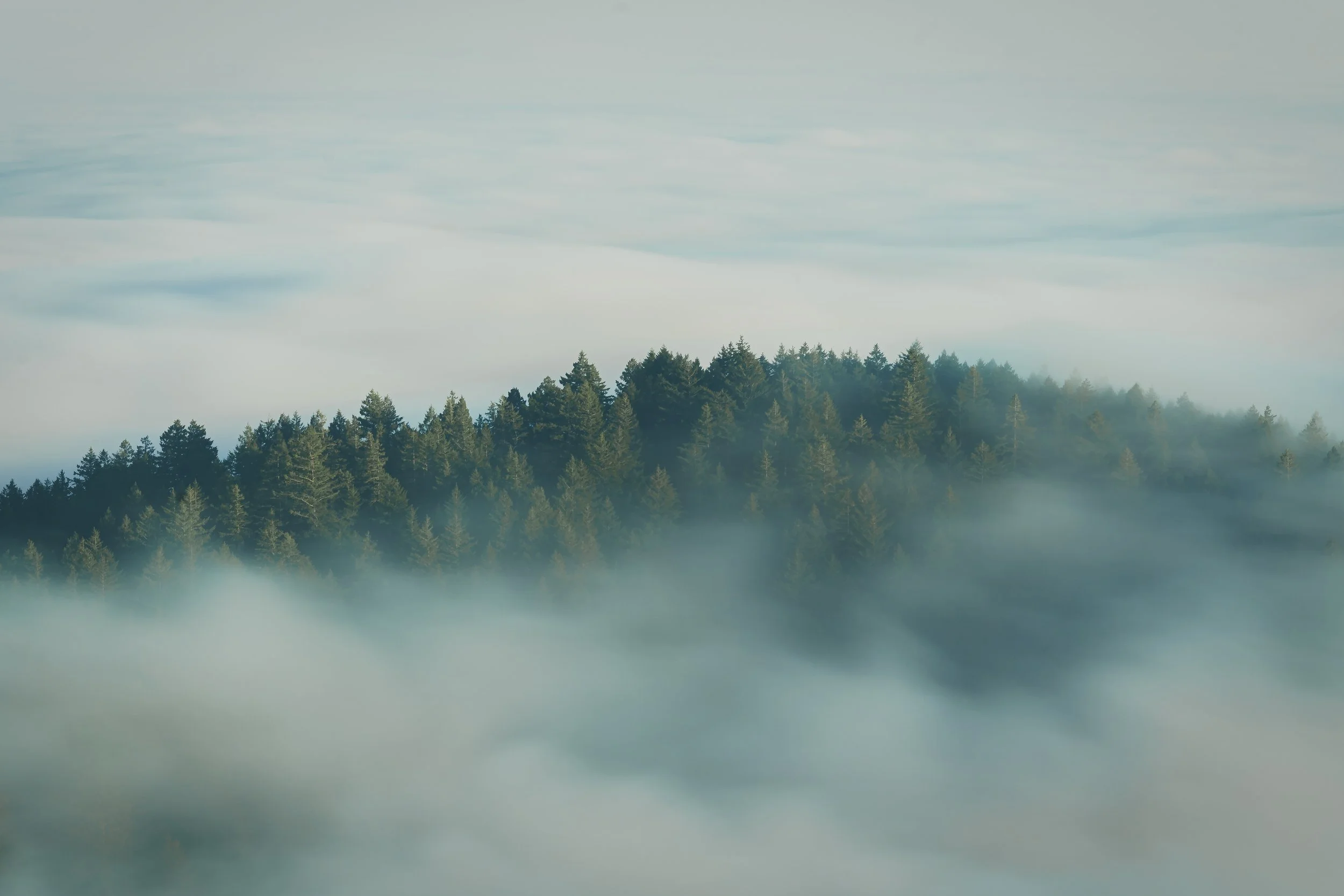 A smaller peak around Mount Tamalpais peaks through the flowing clouds.