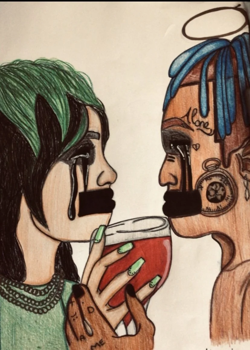 The artwork I made are two artists. Which they are both close to each other. One of the singers passed and left Billie. That’s why xxtentaction has a hallow over his head. It symbols his death. I lost my mother and death and relationships really impact me and show a lot of emotion. I wanted to put that emotion into my work. This tittle is called "heartbreak".