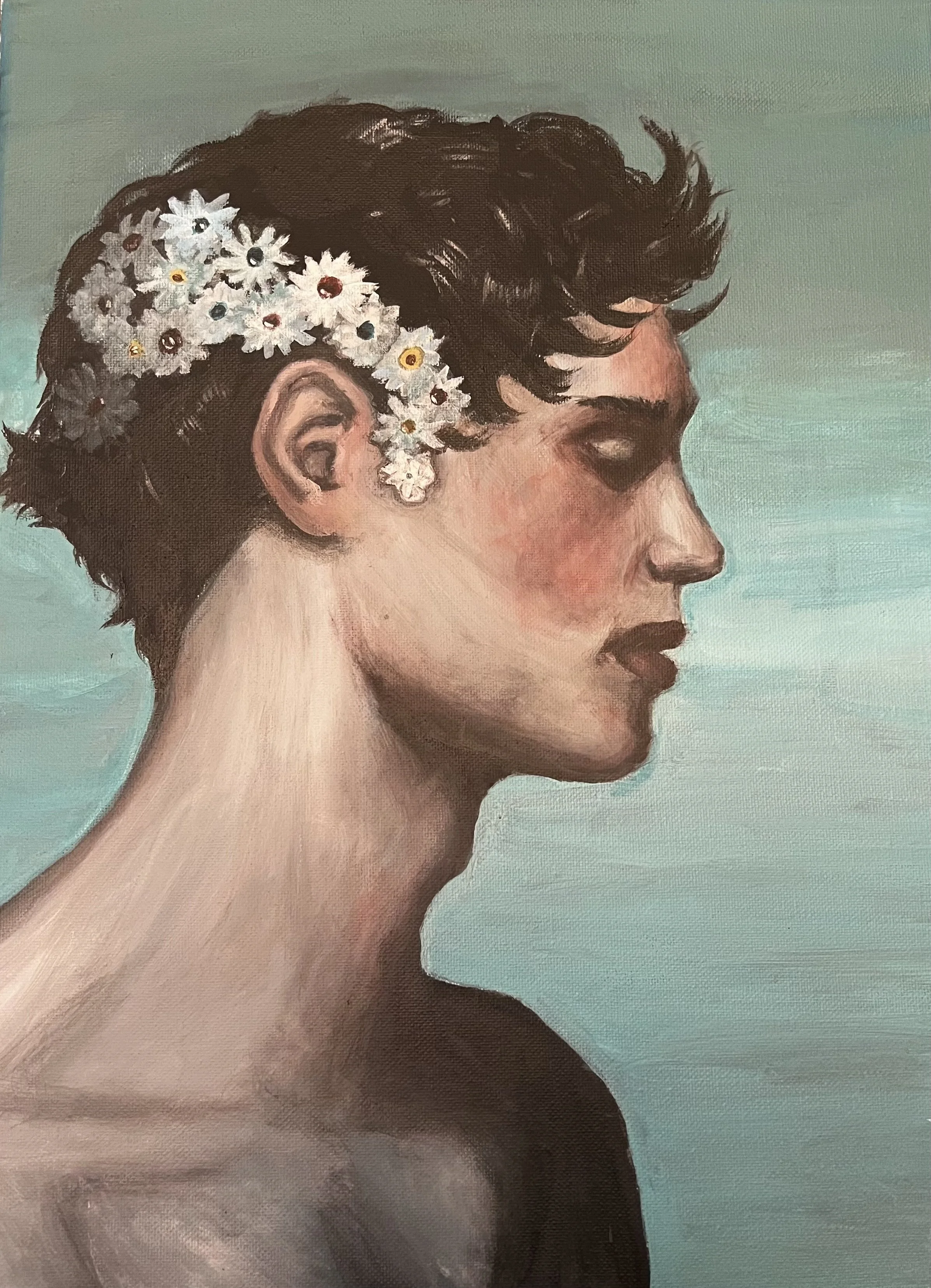 While painting my artwork, I decided to make the boy in the painting look more mythical and ethereal instead of human to give it a unique element.