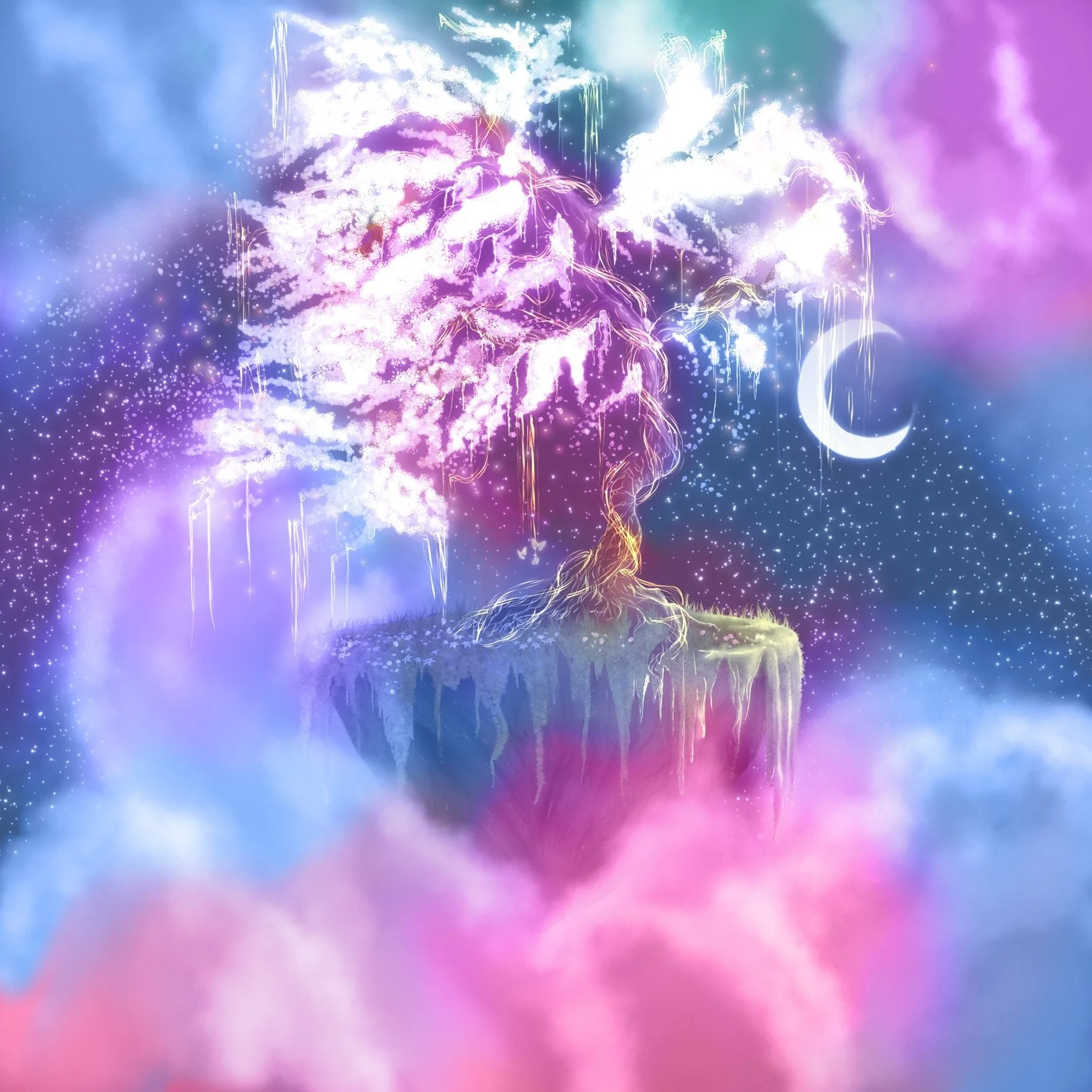 The artwork I did symbolize a tree of life in a different dimension. A tree on a block of dirt sitting in space going through different dimensions.