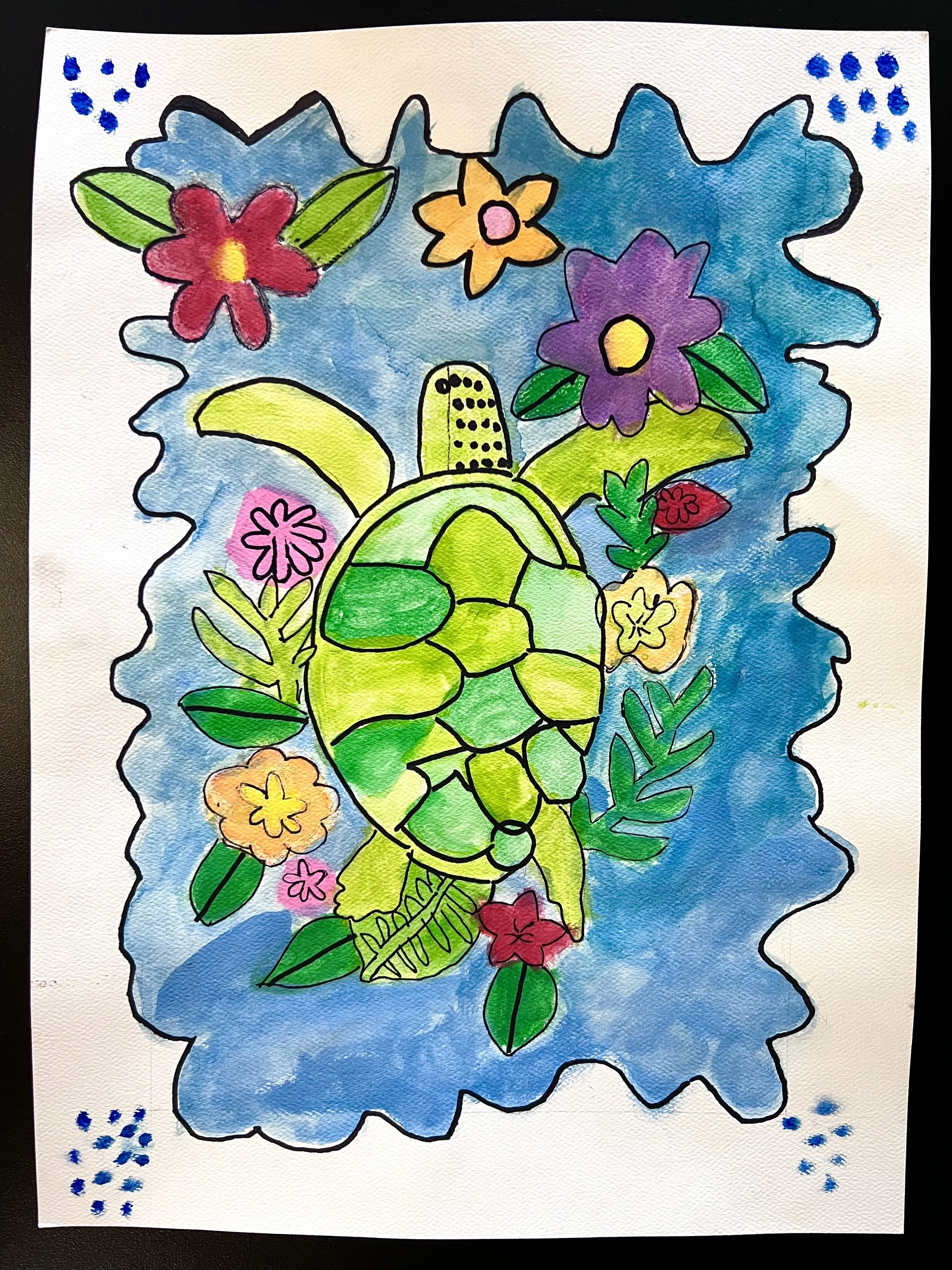This piece was inspired by my love of sea animals. I wanted to create a fun and crazy aspect of watercolor. It was challenging to make this piece with watercolor and get all of the small details but at the end I outlined it with sharpies and I like the way it turned out.