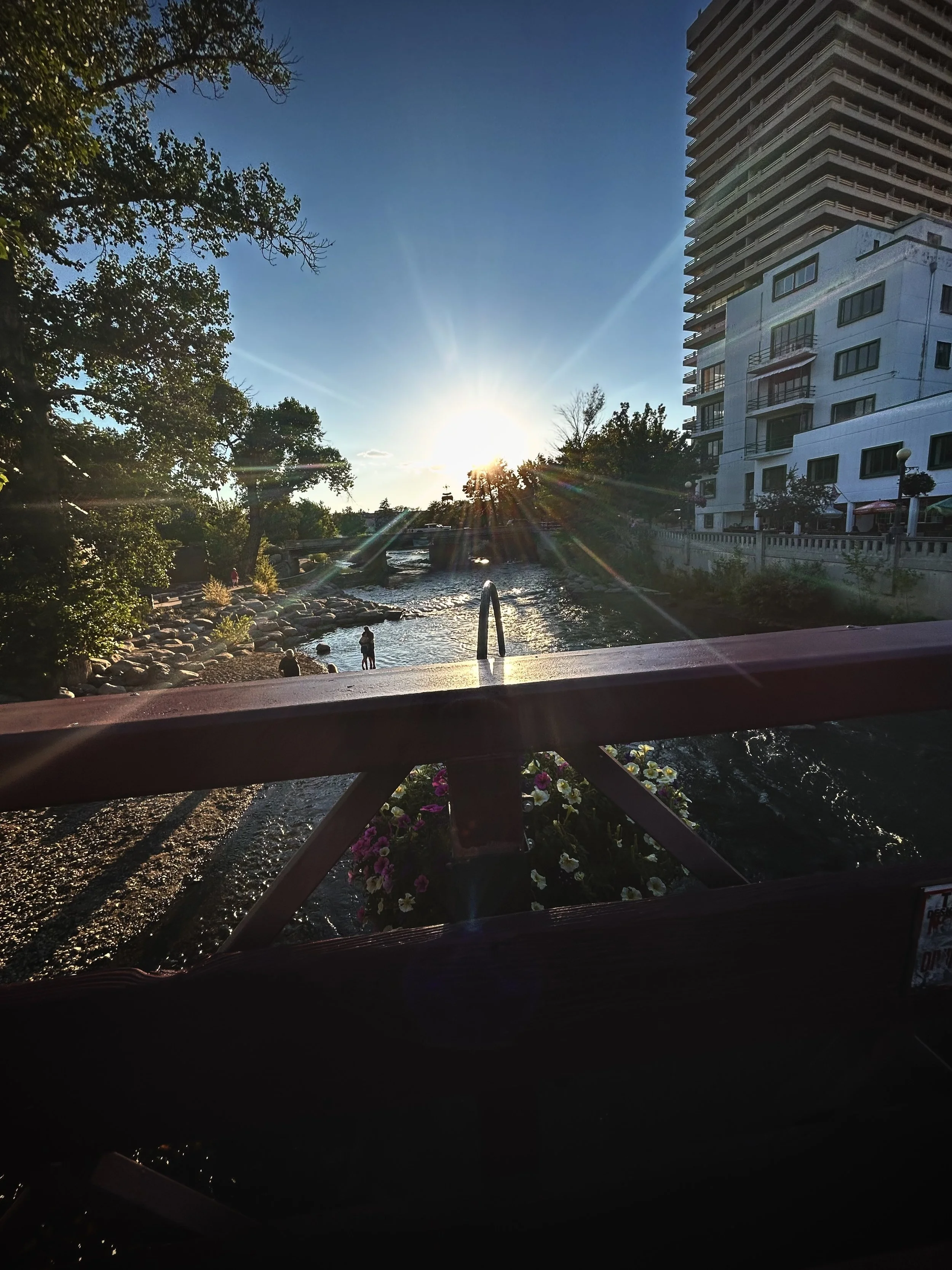 The title of this photo is Sun Gaze. My goal when taking this photo was to capture the glow and beauty of the sun, the rays of sunlight coming down over the river. This photo also gives relaxing energy with the scenery all around it, hoping to calm the viewer. I took this photo in Reno, NV, when I last visited. My goal was to try and get centered with the river and the sun capturing the scenery.