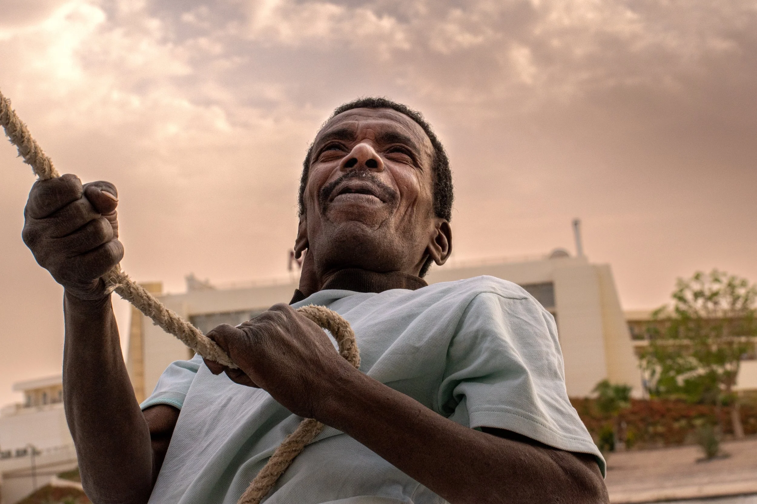 On the Nile River, this man works a long day’s job manning the lines of a tourist boat as they sail the great river.