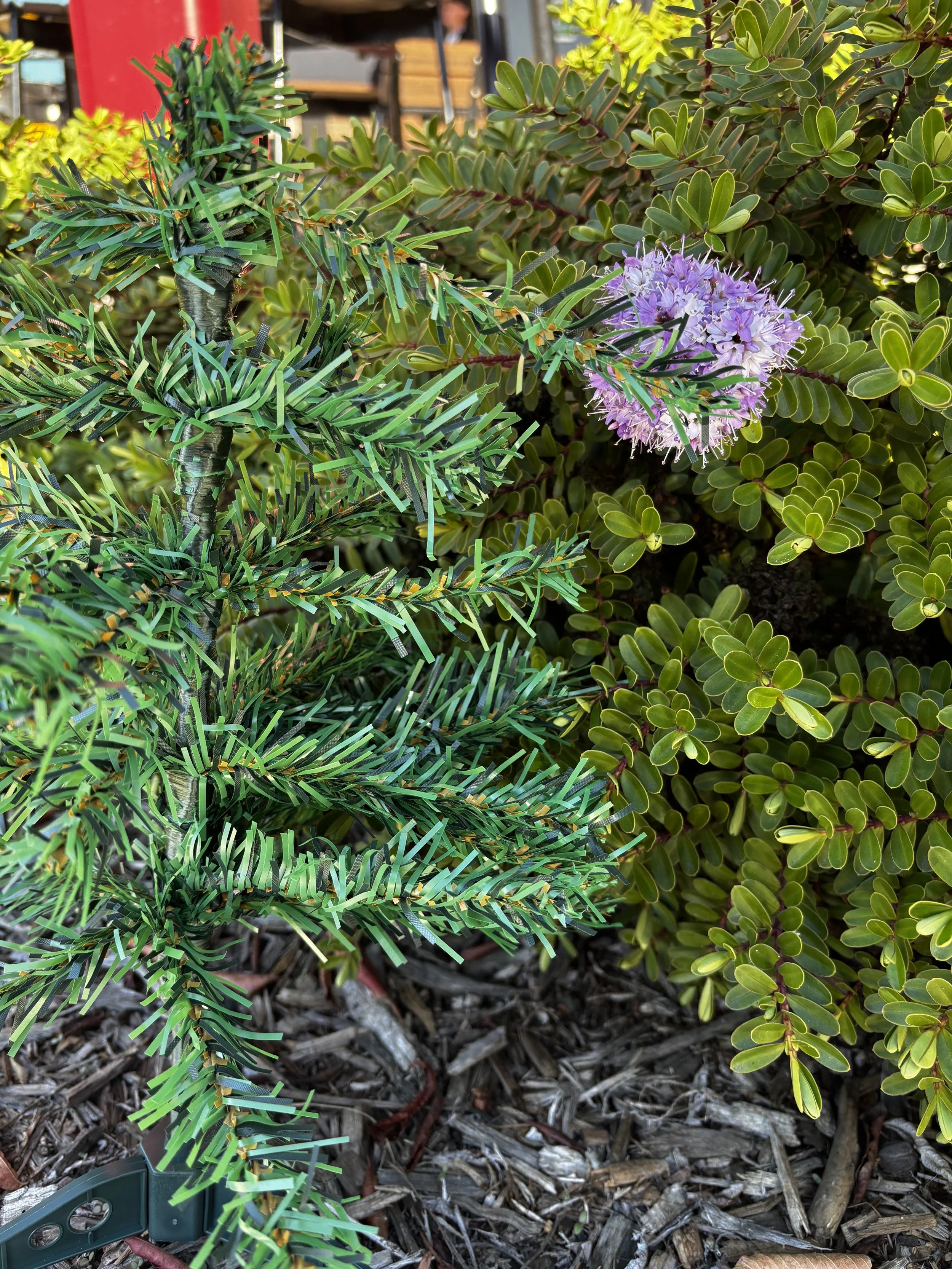 This is a photograph about an artificial tree, when I stumbled onto a beautiful flower not knowing I was going to find one like this but ending up getting a great picture for it.