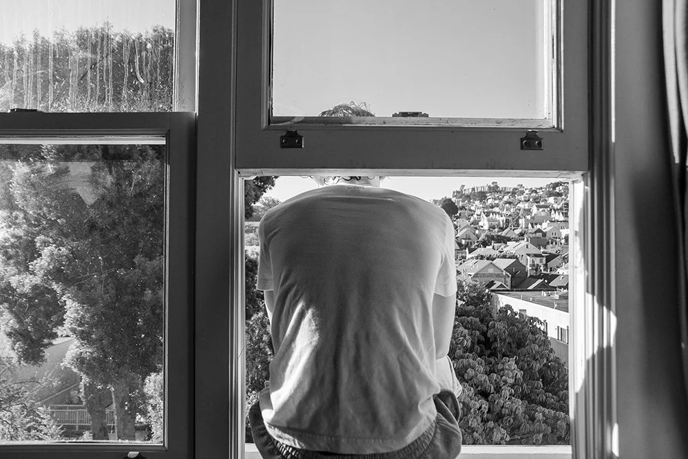 This is from a series of work I did for my photography class about themes of hope and despair and my belief that hope is the more powerful emotion. I decided to use black and white to highlight the juxtaposition between these two contrasting feelings. In the image you see four quadrants, you see a solitary figure gazing out on a beautiful landscape with most of their head out of view because of the wooden beam in the window. The smallest quadrant shows condensation, this is to symbolize the murky side of the human spirit that is not seeing positively or clearly. The other three quadrants are clear and symbolize hope.
