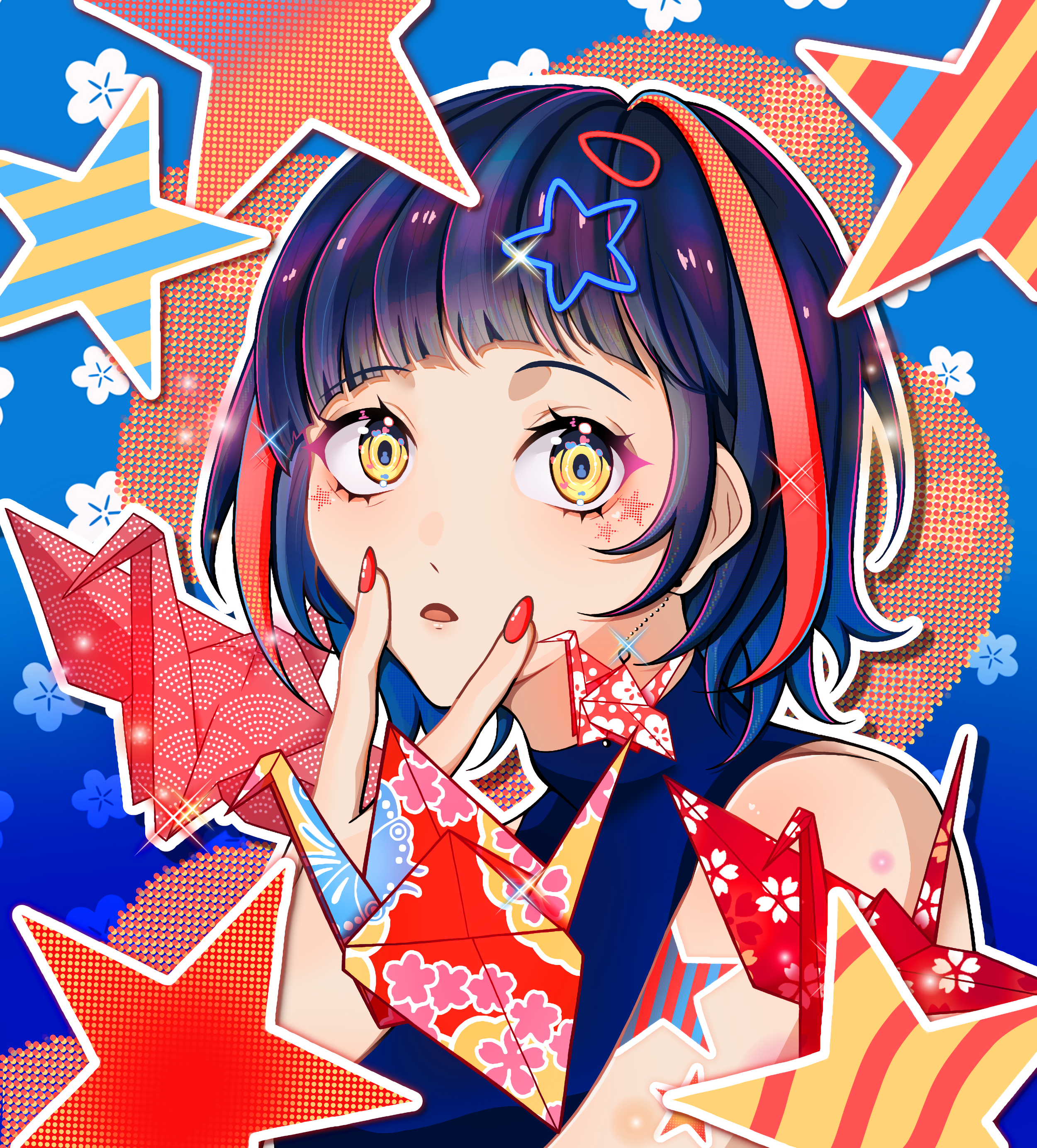 For this piece, I was inspired by a recent passion project of mine. I took up origami for the first time, and made the miniature cranes into jewelry. For this artwork, I wanted to channel the happy and whimsical vibes I hope people feel when seeing my work. On a more personal level, this project was a way for me to connect with the Japanese side of my culture that I once felt detached from. Paper cranes symbolize hope and good fortune, and hold so much more historical importance. Learning about their meaning was inspiring and eye-opening, and I would love to be able to share this message with an even greater audience through my art.