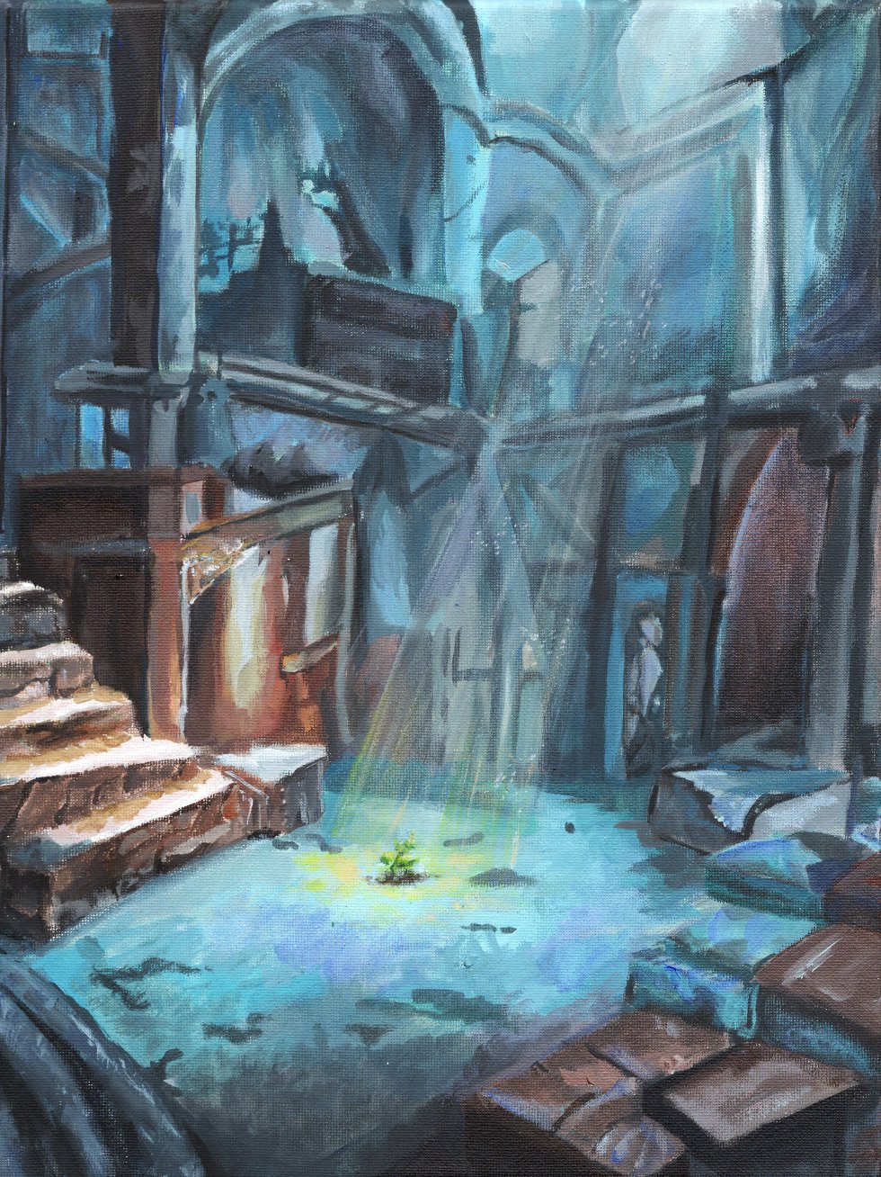 In the setting of an abandoned warehouse, A Ray of Hope explores how there can be hope even in unlikely places. Something as small as a crack of the pavement and a miraculous ray of light allows life to emerge, taking the form of a sprout. The ray of light symbolizes the sliver of hope necessary for change, while the sprout symbolizes the powerful results that hope nurtures over time. This reminds us how hope doesn’t always come from grand gestures; it can come from the little things: strangers’ kindness, a peer giving optimistic feedback, or simply small acts of kindness. The ray of hope drives success from these unexpected places.