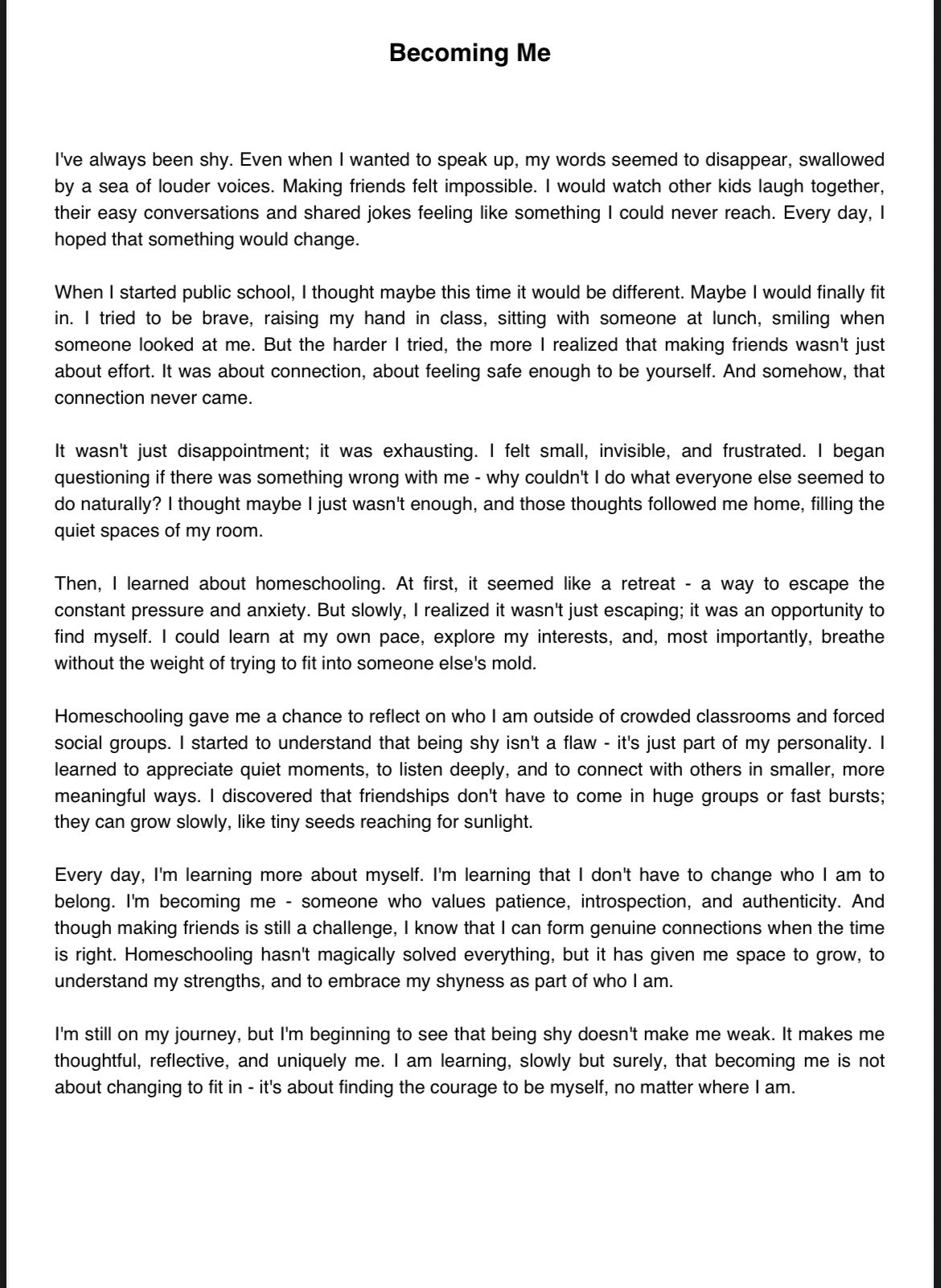 Becoming Me Creative Writing Feb 3 Written By Tools BACF Malak M. Artist Statement N/A Creative Statement Creativity is the ability to come up with new ideas, solutions, or ways of expressing yourself. Tools BACF