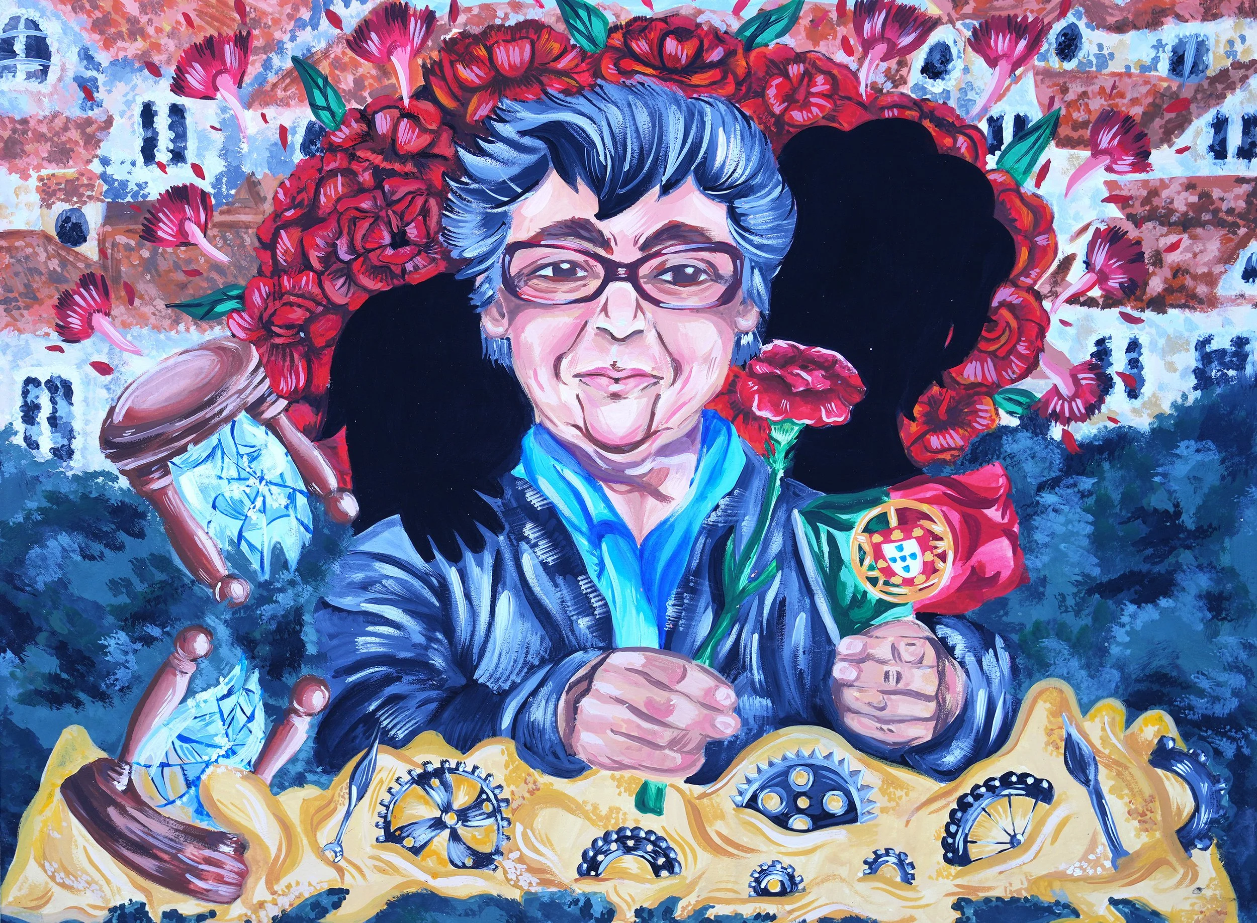 I created this piece for my Portuguese teacher who showed me what an everyday citizen can do when fighting for their dreams. Dreams can span across our lifetime, like Celeste Caeiro, a key figure of the fight for Portuguese Independence. My work shares the intent of time through the silhouettes, showing her life progression. Her dream of liberty accomplished through non-violence, is demonstrated through the red carnations, a Portuguese symbol for freedom. Furthermore, her dream of strength within a community is visualized by the rural Portuguese homes surrounding her. My work is a representation of the commitment it takes to achieve one's dream. A tribute to Celeste Ceairo, showcasing her dream, and the time to witness a community's freedom and independence peacefully. My work aims to shine light on female activists who are not emphasized in history, those who fight for access to opportunity and knowledge for their community.
