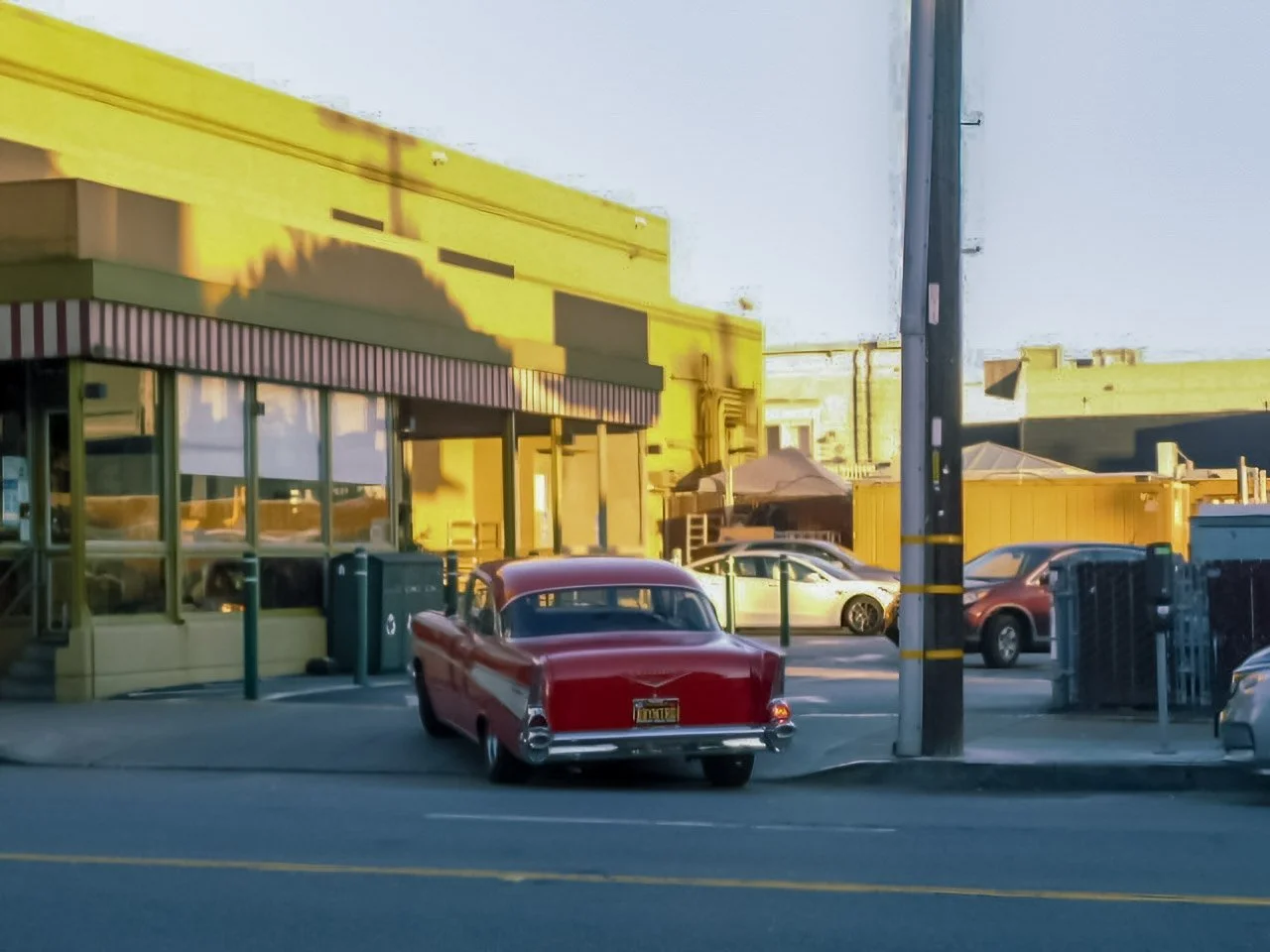 I took this photo in San Francisco while celebrating my best friend’s birthday using his personal camera. We were walking on the sidewalk eating ice cream when I spotted this old car painted in cherry red and became very intrigued so much so I almost dropped my ice cream when I took up my camera and aimed it at the car while it was pulling into a parking lot disappearing into the array of different cars.