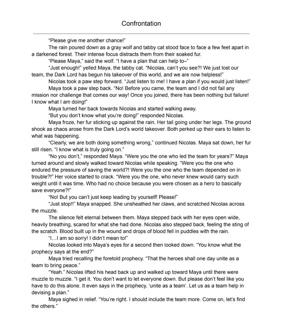 This short story is based on a larger fiction story that is currently still in the process of being written. This story is between two prophesized heroes that are part of a larger (though currently lost) team. One character has been the leader of the team for so long, the stress caught up to her. In a sense, I feel like everyone lives in the perspective of Maya at some point. We are prone to overstress and that is what makes us human. Unfortunately, that overstress can lead to outbursts and unintentional harm to others. And this story acts as a mirror for those who are easily prone to stress, especially for those who try to bottle up such feelings.