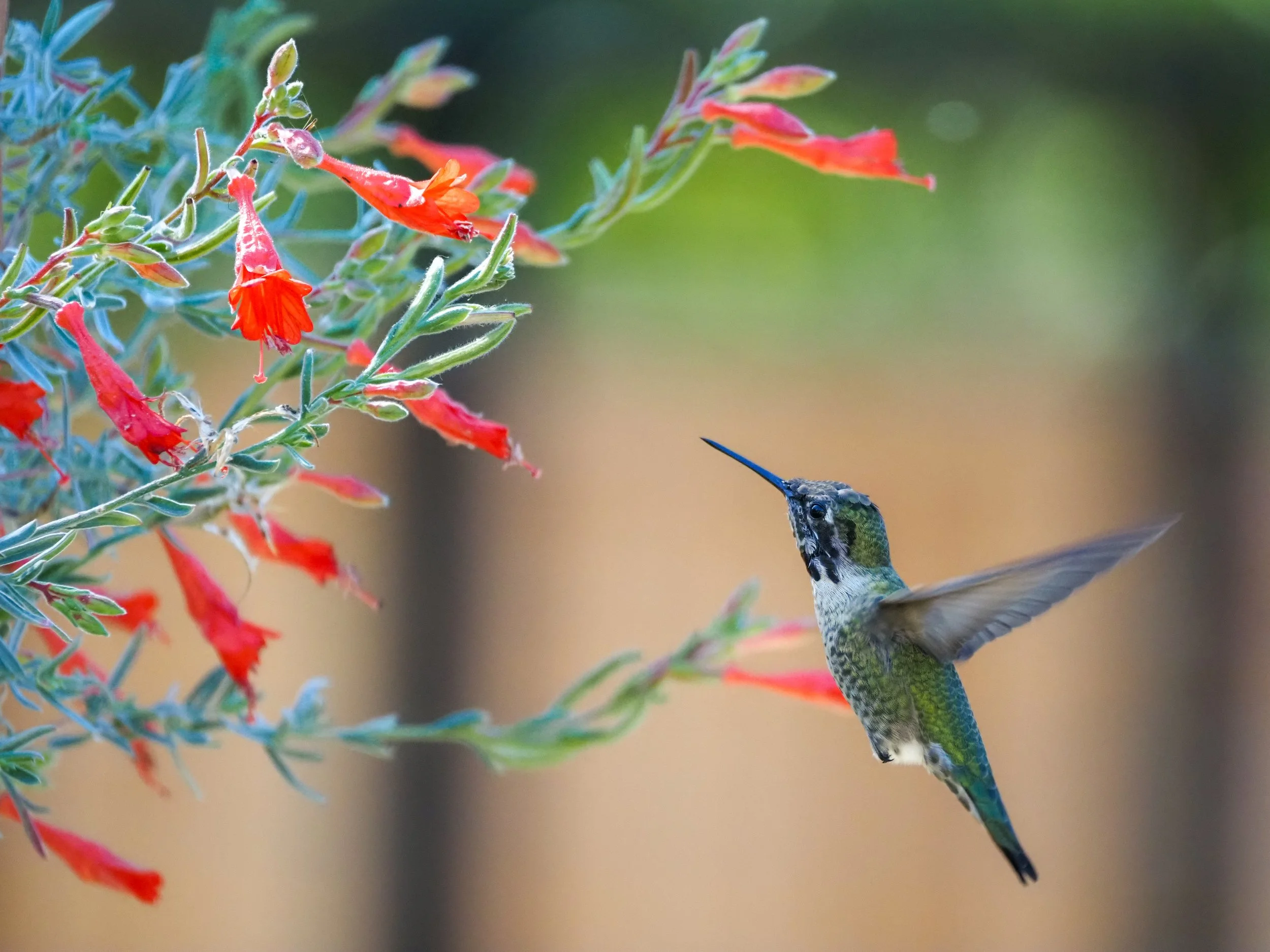 After drinking nectar from a California fuchsia bloom, the hummingbirds that visit my garden pause before choosing a new flower, allowing me to observe and capture their beauty for a split second. To photograph the hummingbird, I used a mirrorless digital camera and a lot of patience. The Anna’s and Allen’s hummingbirds that visit my pollinator garden usually spend less than a minute feeding from various plants before darting back into the trees; then, I have to wait 15 to 30 minutes for the hummingbird to return again. Despite having photographed hummingbirds for over three years, I still feel wonder and excitement every time I see one of these incredible birds, and I tried to include these emotions in my work. I used Adobe Lightroom to lightly edit the photo.