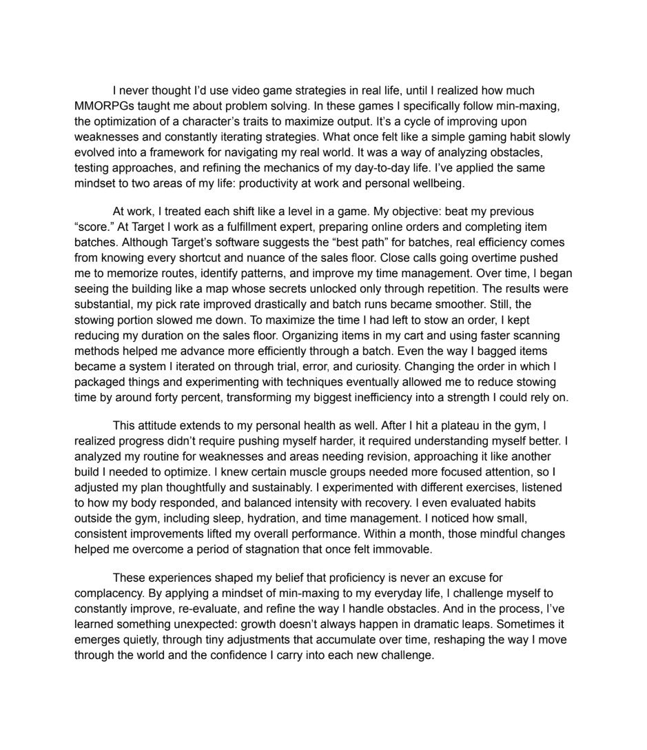 This work is a deep dive into how I explore my creativity in my daily life by using my passion from video games.