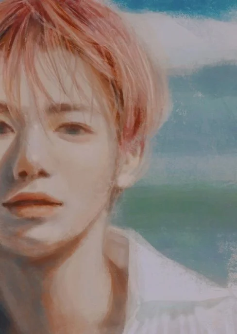 This artwork is a digital portrait with a soft, dreamy feel. I wanted to capture a moment of calm and quiet observation. It starts with a sketch, then I layer my colors in with a brush like texture. I tried to add contrast with the hair and the sea.