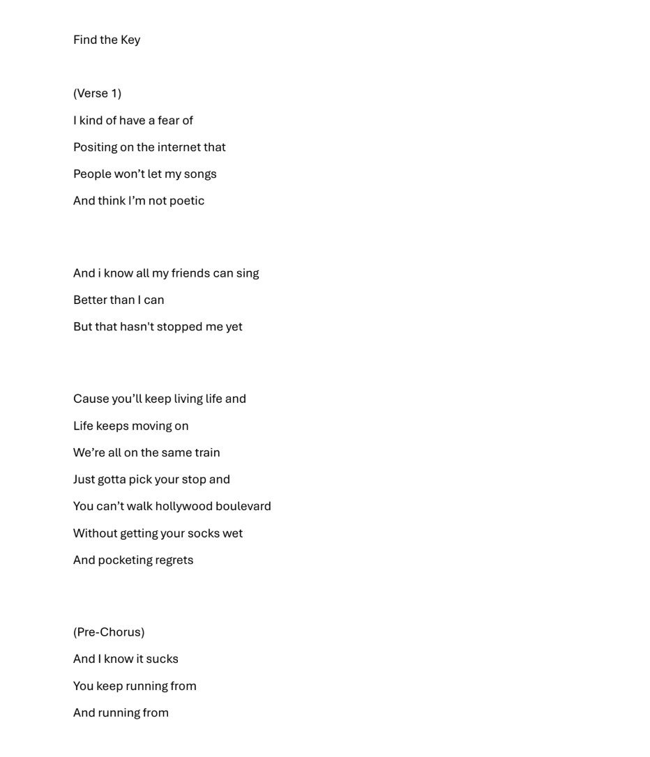My song “Find the key” is about how maybe life isn’t going the way you’d like it to, but it’s going to keep on moving whether or not you are coming with it. And if it doesn’t stop, you mine as well do the things you love. There are so many things in life that are irritating, like fears, and comparison, but in the end, life might be a sad song so at least spend it doing the things you love.