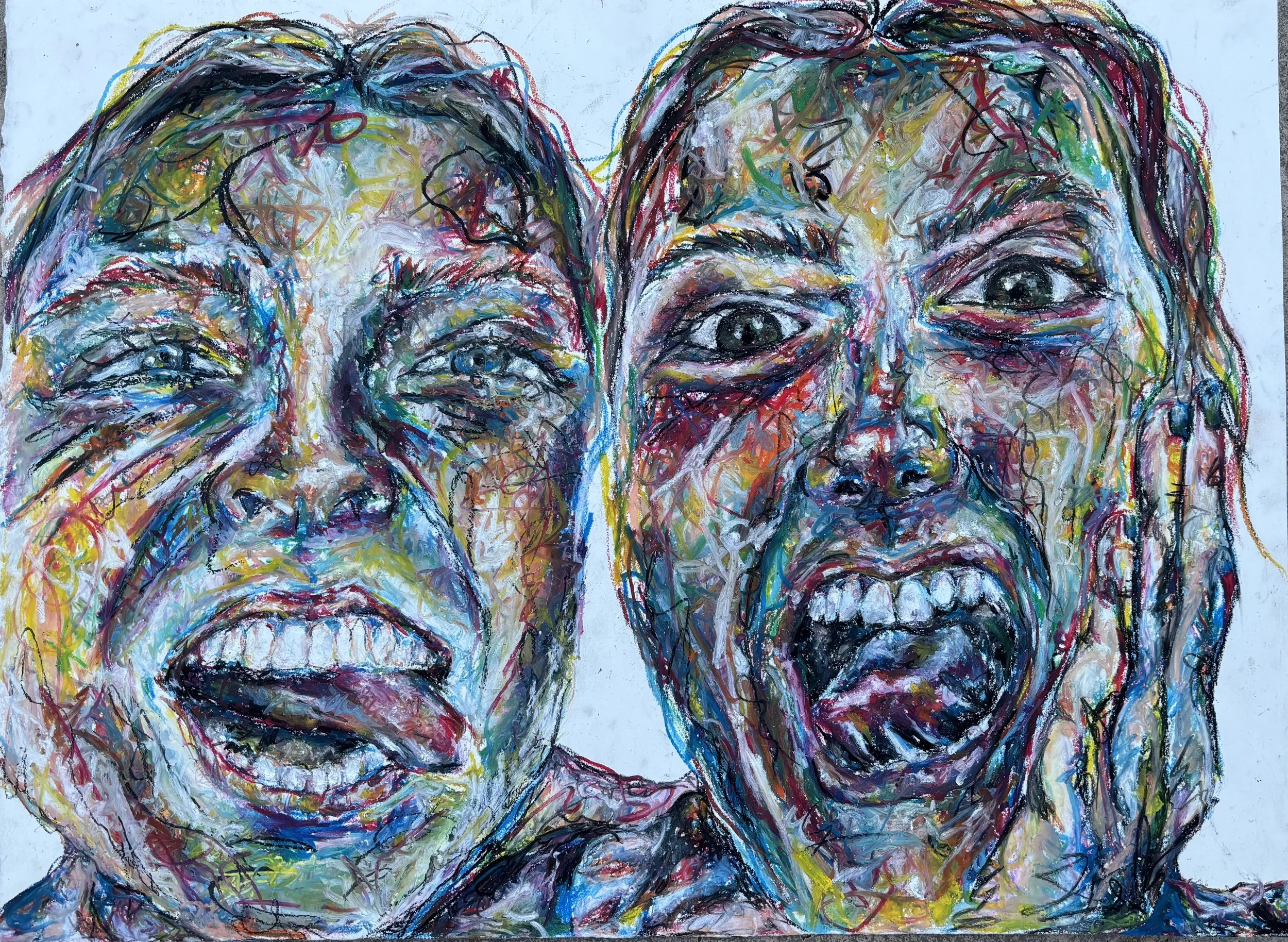 A union between me and my best friend Zola is displayed through the energetic color and silliness of the portrait. I created this piece to represent our love for art and each other. I grew my passion for oil pastel and drawing people. Through this art I was able to gain a deeper understanding of myself and how to surpass mental limitations of what I believe I can create.
