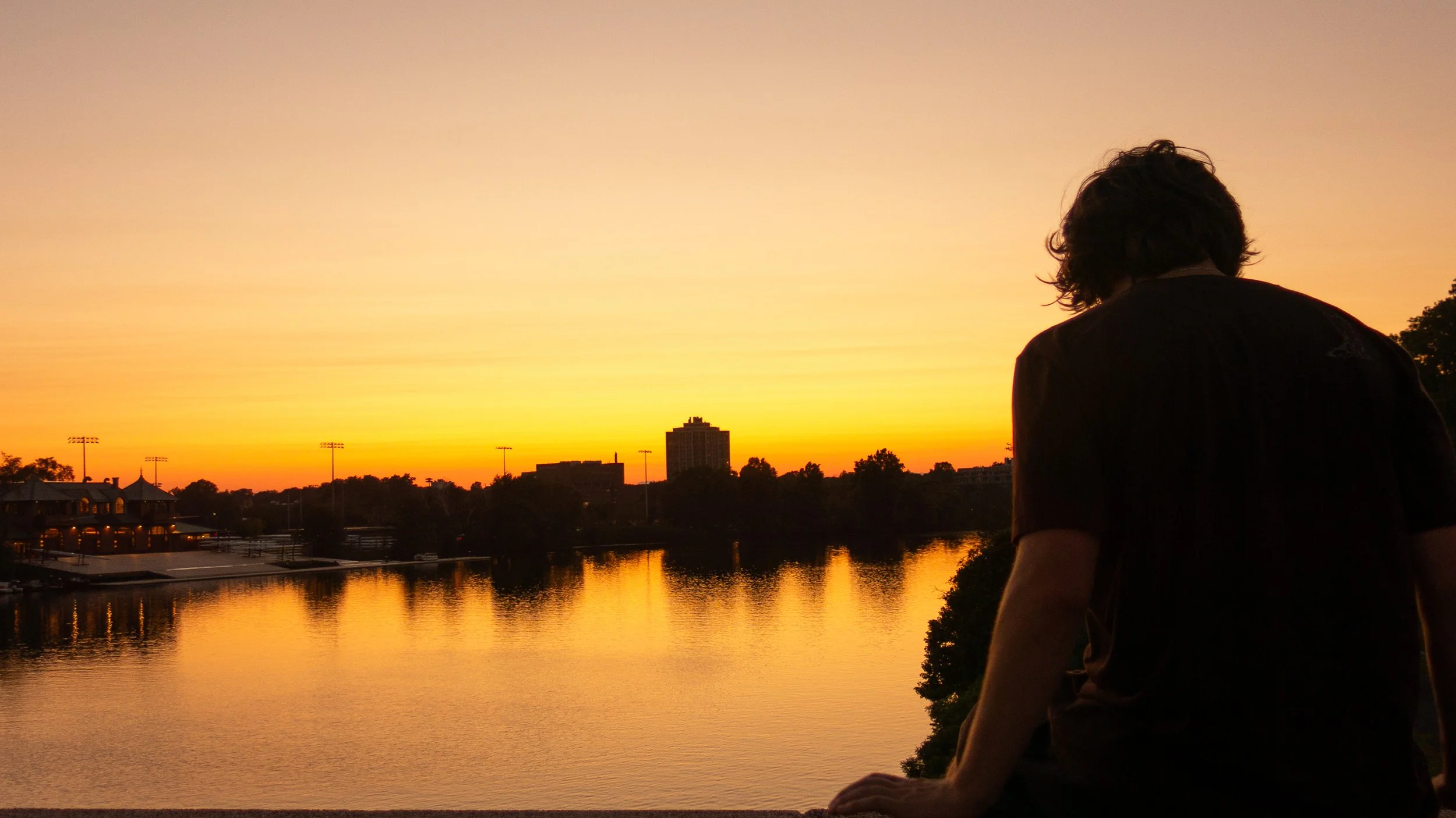 I was wandering around a city as the sun went down and decided to capture my friend sitting on the bridge watching the sunset.