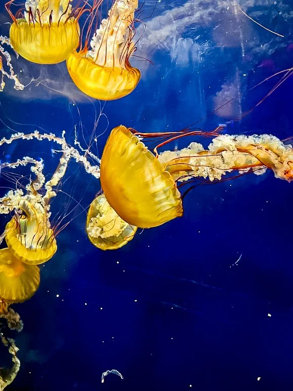 My photo was taken at Pier 39 Aquarium. I was inspired by how the jellyfish glowed softly as they floated through the water. I focused on capturing their calm movement and golden light. I didn't edit much because I wanted to keep the natural colors and glow. This photo shows peaceful beauty of the ocean life and how light can make simple moments feel special.