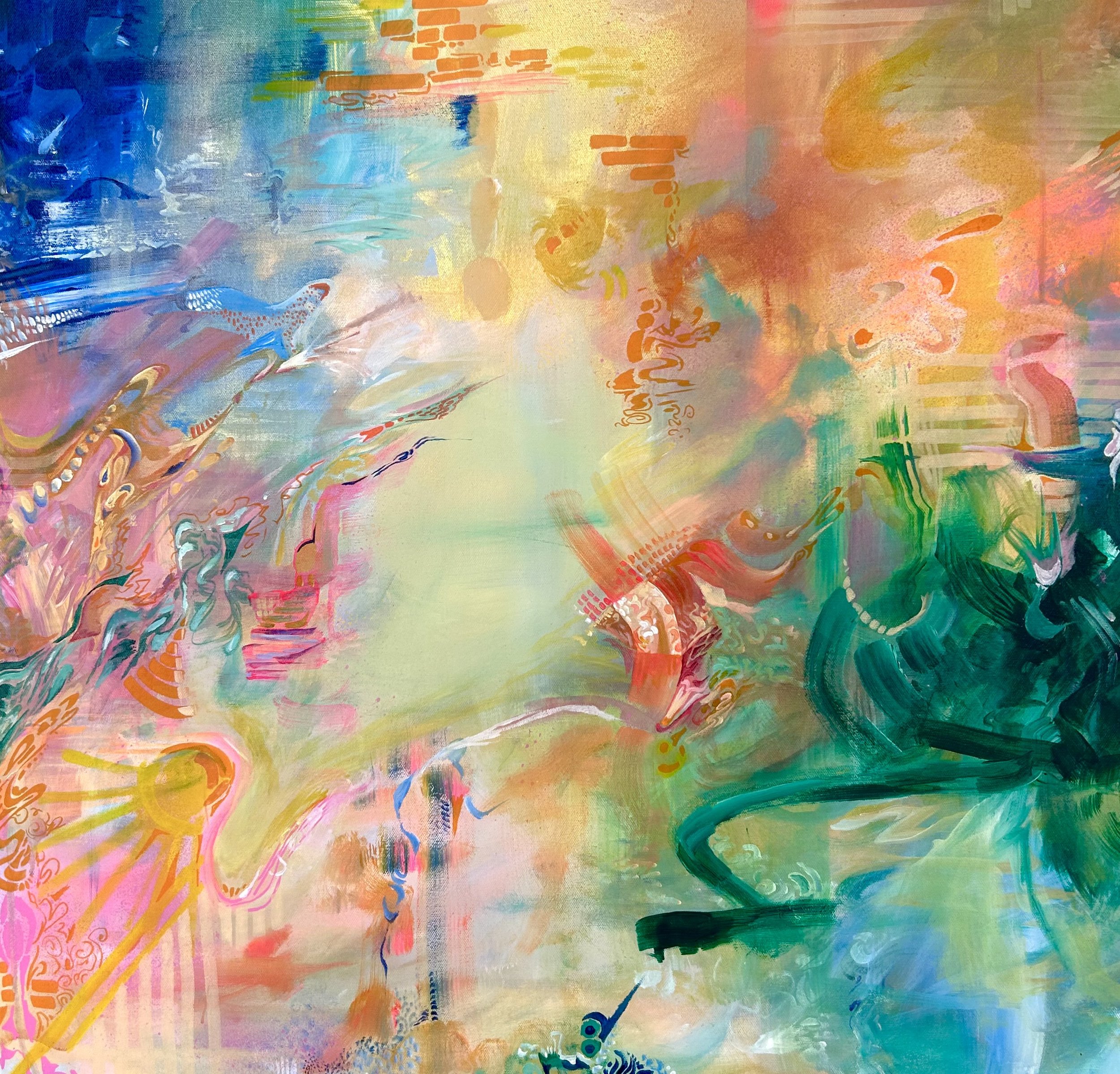 This peice is a harmonious blend of color and shape, representing my relationship with religion, karma, and the belief that everything happens for a reason. As I have explored my own identity with "God" I have found a solace in the belif that my actions are predetermined, helping me relive my anxiety that there is no wrong path. Through color, I have explored my relationship with a higher power, using a variety of hues to show how even the worst moments can lead to beauty.