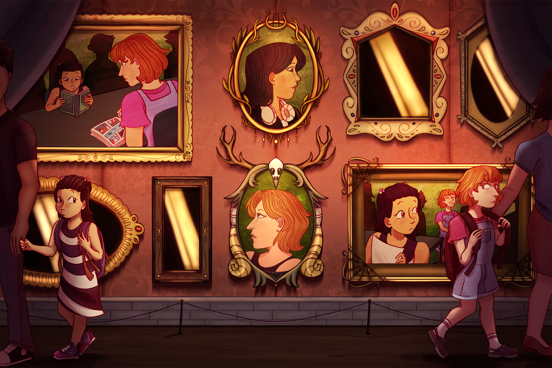 When looking through my old elementary photos with my dad, we came across a picture of us walking into school and passing a mother-daughter duo that we immediately realized was one of my close friends and her mom. We hadn’t really become friends until junior high, and the picture seemed to be entirely out of chance, giving me the inspiration for my next piece. “Impressions” aims to encapsulate this chance meeting and the other few times we’d meet down the line before truly becoming friends. Using a museum-like environment, I wanted to present a timeline-based exhibit, with our current selves in the center. Through “Impressions”, I hoped to really showcase the art of first meetings, and how you never know what the future holds.