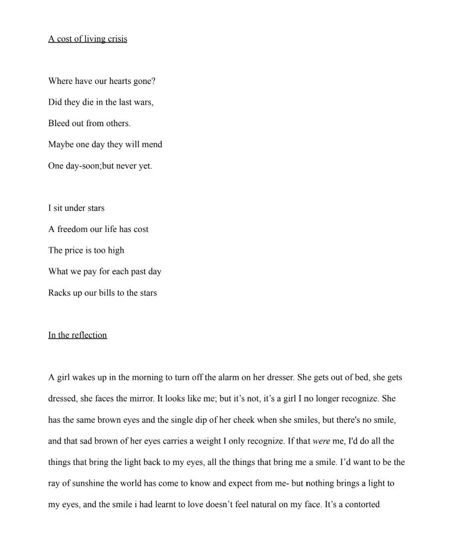 A collection of reflections on societal and individual thoughts and views, these poems divulge in aspects of humanity that are not often spoken aloud. Effects on our climates and effects our social climates have on us, to reflections of ourselves and the role we are taking as individuals in our lives. Society clings to hope and love but when distance pulls that away the challenges we face can feel an immense load heavier. I don't try to comfort the natural pains of life, but ensure no one bears the weight of trying to navigate this difficult world alone.
