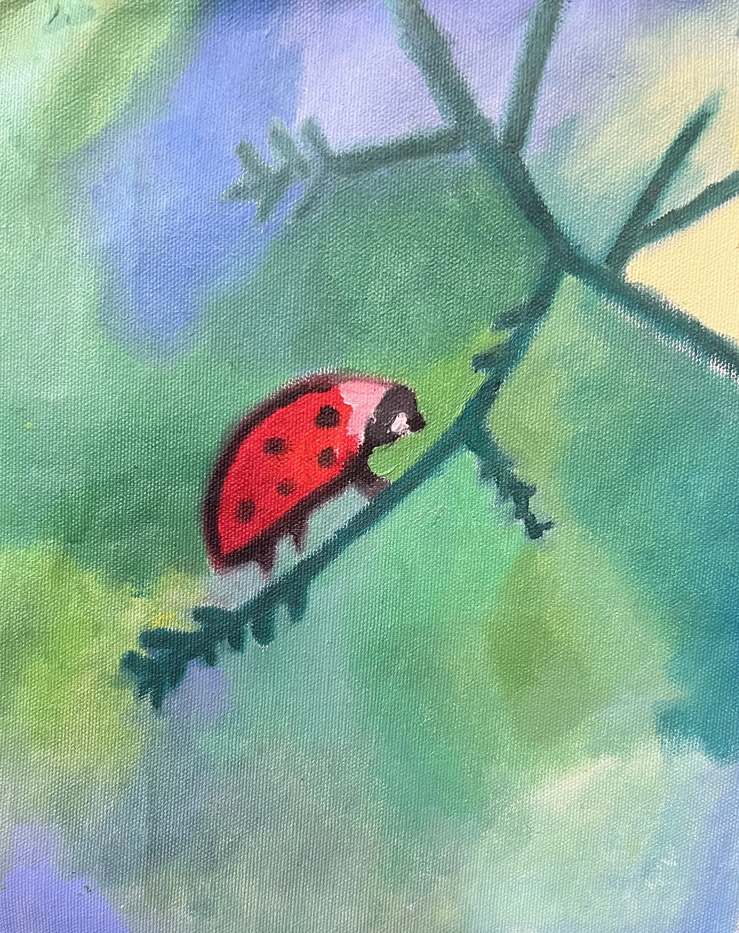 Ladybug Visual Art Feb 11 Written By Tools BACF Sam W.Oil and acrylic paint Artist Statement Ladybug on branch on canvas. Creative Statement Feeling free. Tools BACF