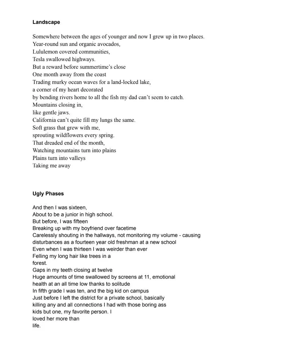 Landscape Creative Writing Feb 1 Written By Tools BACF Paige W. Artist Statement This is about the contrast between my daily life in the Bay area and time spent in Montana where my maternal grandparents live on a farm. Creative Statement To be creative is to be an individual, different from someone else. It is what makes us unique. Tools BACF