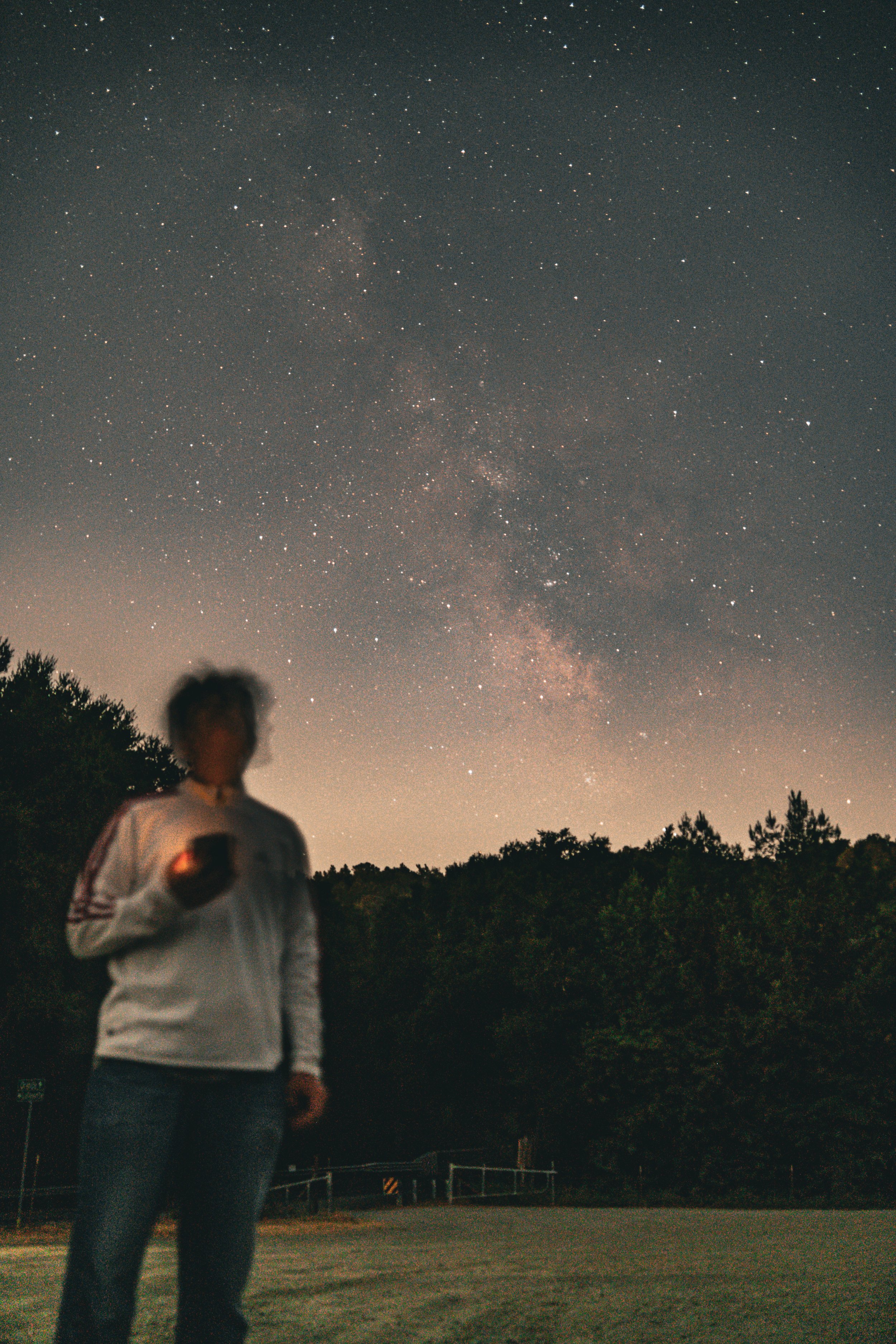 I instructed my friend to look out into the center of the milky way. Often times, as people are always in light polluted cities they are unable to see the wonder of the stars. I am fascinated with the stars and looking deep into them. The more you look the more you think you are going to find. Often is the case that this is not true and you just are staring into nothing. My purpose of creating this artwork is to show how the night sky could look without light pollution.