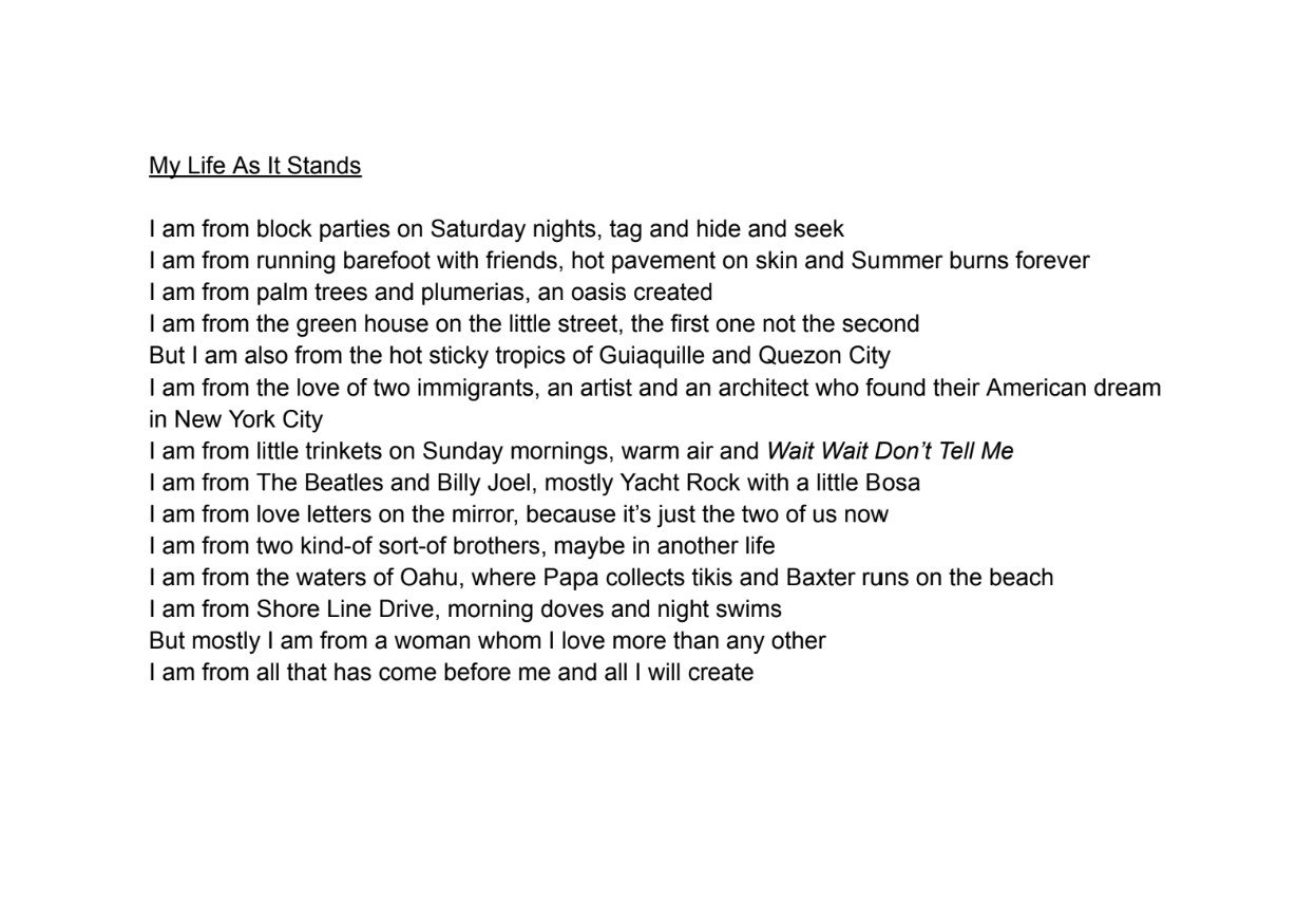 This was poem was inspired by an assignment we had in english class called “where i’m from poem”, and I interpreted that into my own. This poem is about my life so far, the things that make up who I am and the experiences I have been through to get me where I am today. My second poem is about my childhood teddy bear “Teddy” who I parted with when I “gave” him to my father for safe keeping when he passed away. Teddy was cremated along side my father and I like to think they are still together keeping each other company because it was him who gave Teddy to me.