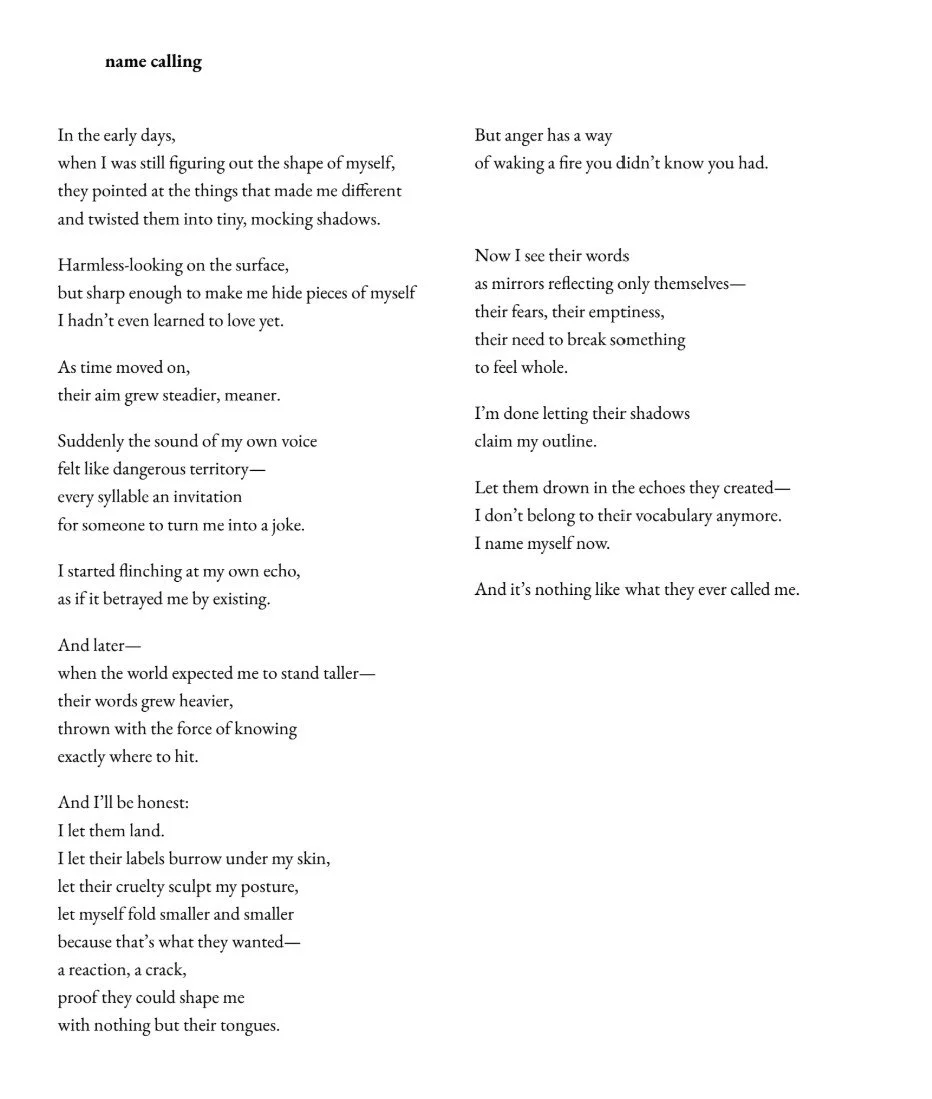 As a kid, I've been picked on and name called. As I got older, the name calling began to go overboard and it went to far to where I've been called things I'm not. I never told anyone that before. So i chose to right it out, like I always do.