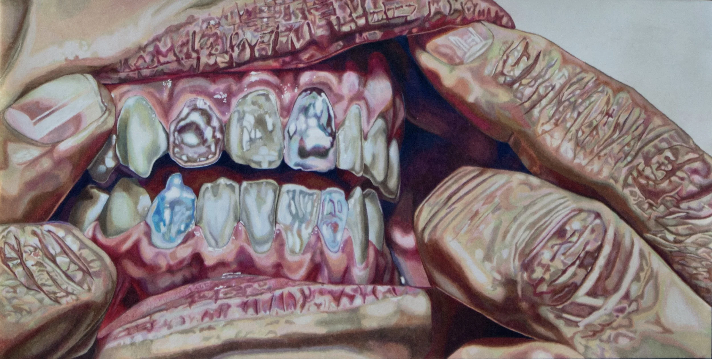 The piece Pearly Whites, aims to critique societal standards about beauty by using surrealism. The piece is a play on the saying "Pearly Whites" and how in actuality, the expression is very unrealistic. To show this, I created a surreal representation of what it would look like to have pearls for teeth.