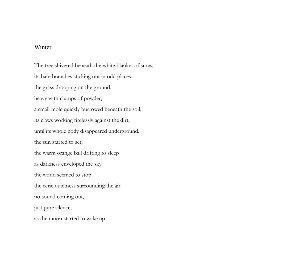 Reflections Creative Writing Feb 5 Written By Tools BACF Grace L. Artist Statement I have put all my past experiences in these poems to make others have a connection, relate to it, or just to simply enjoy reading these. Creative Statement Creativity to me means expressing all my thoughts and emotions into a solid object so it can show how I am different or similar to other people. Tools BACF