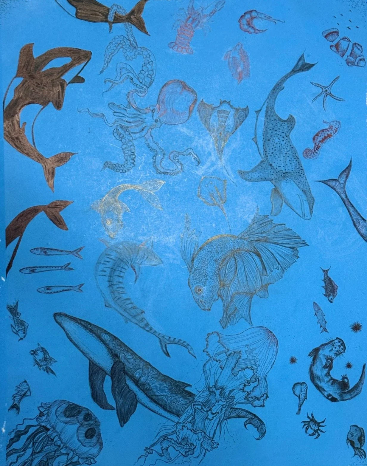 I love working with pen & ink because of how intricate and detailed the designs can be. The medium allows me to articulate and modify every part of an art piece with precision, and its versatility is what draws me to it. For this artwork, I chose to create a piece based on the sea, something equally diverse, layered, and endlessly fascinating. "Seascape" resonates with me because drawing what I’m passionate about brings peace and sense of escape from reality. Like the ocean, art is full of stories, and emotions waiting to be discovered, and exploring that depth gives me comfort. With this piece, I hope to inspire a feeling of possibility and reflection in viewers, encouraging them to pause and look deeper. While many escape through entertainment or books, I find mine through drawing, especially during difficult moments. Art became my safe haven, and this reflects that personal escape and discovery.