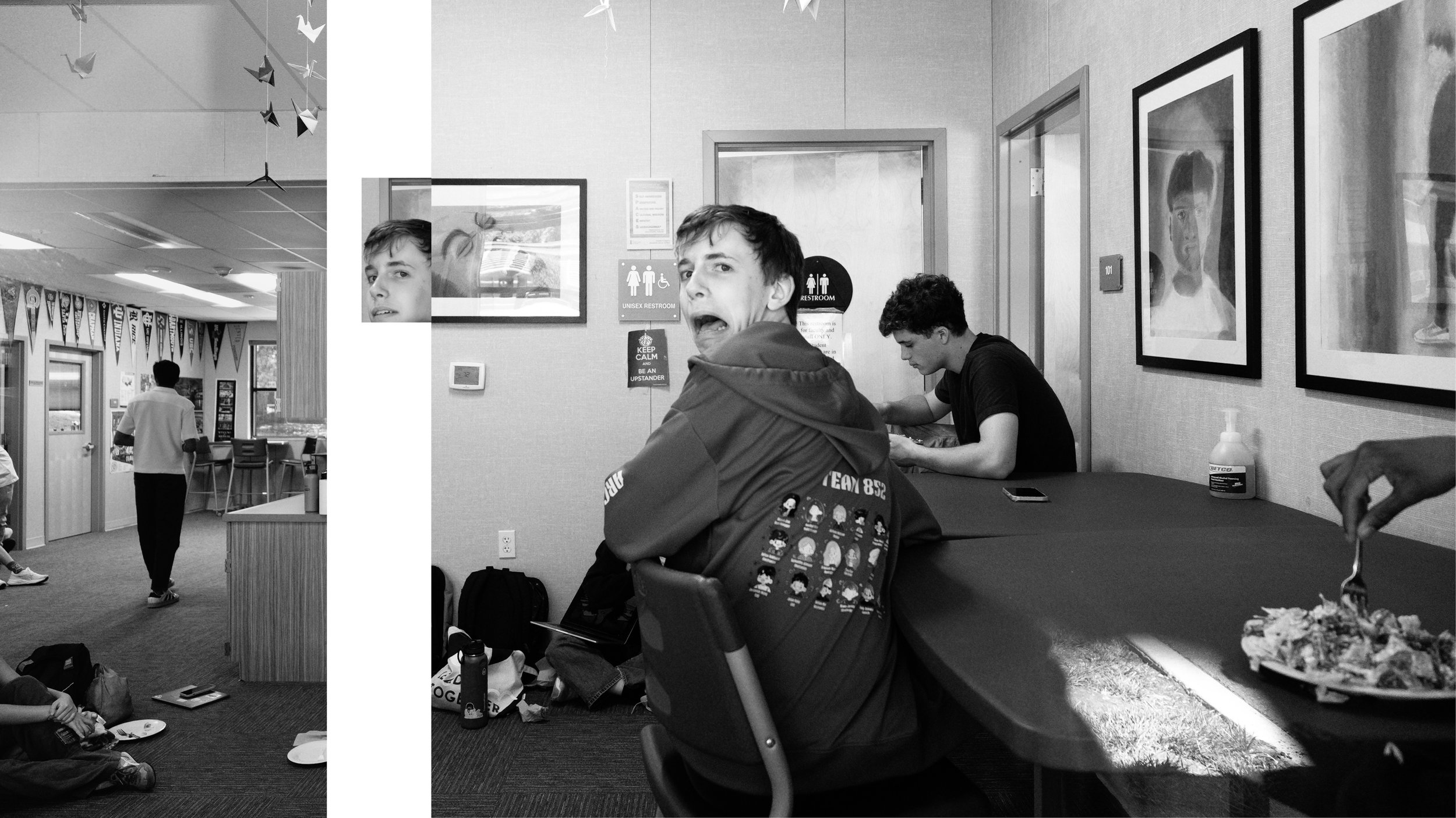 I like to experiment with manipulating space and time, to explore the liminal and jumbled moments that don't quite fit into our universe — one that forces us to constantly move forward. Accordingly, my artwork's title is inspired by an eponymous shoe-gaze album, whose cover art and music take me out of the linear experience of spacetime. My camera helped freeze my friend at particular moments in time, and I used Photoshop to rearrange the timestamps and the space around him. This piece was shot at school, where I often feel the pressure to get my life together, when I have little figured out. To depict me making sense of this place and stage in my life, I disintegrated the construction of school, and represented us as "floating" pieces finding unexpected ways to fit in. I hope it makes us question the alternative configurations of the world, if ours came undone.