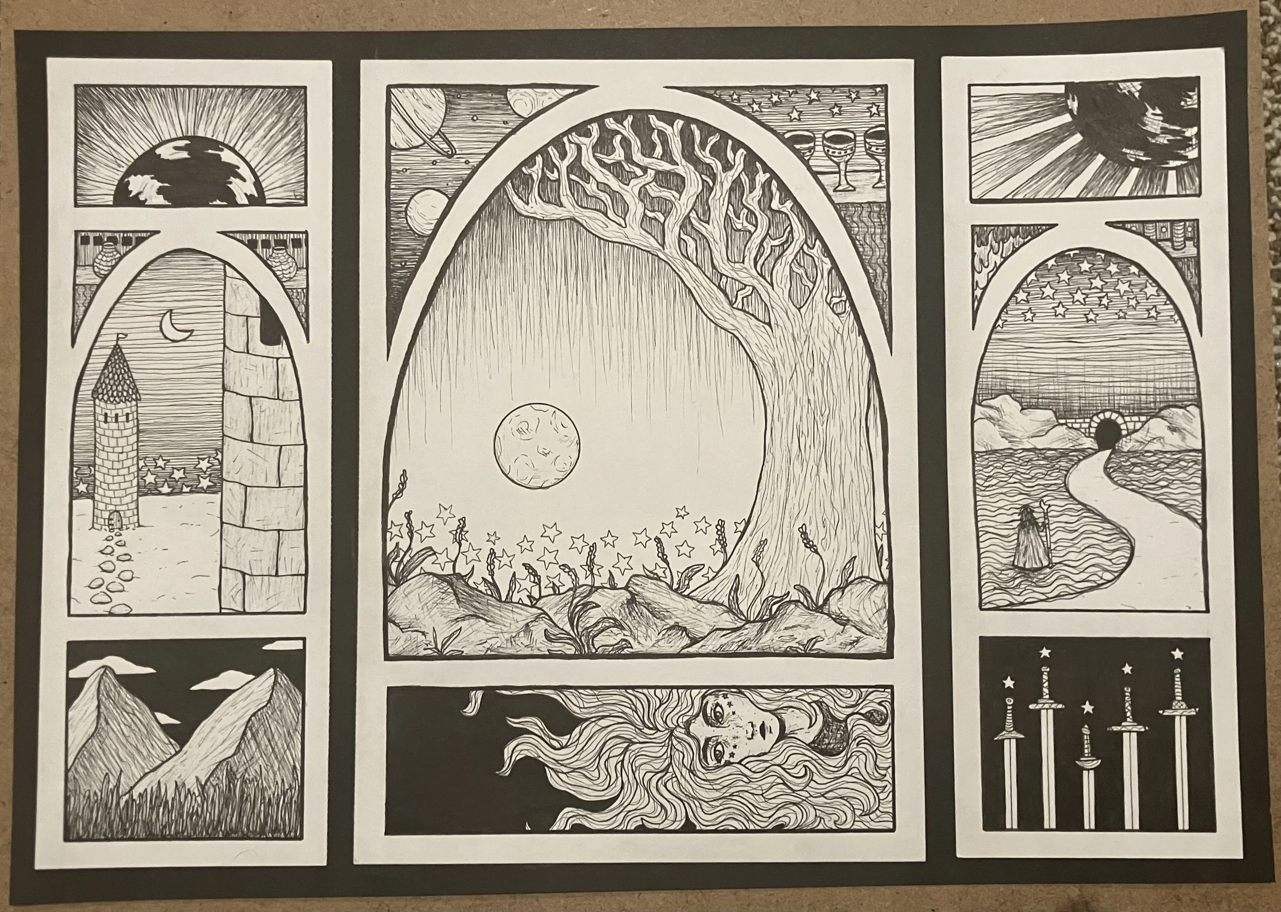Pen and ink on paper