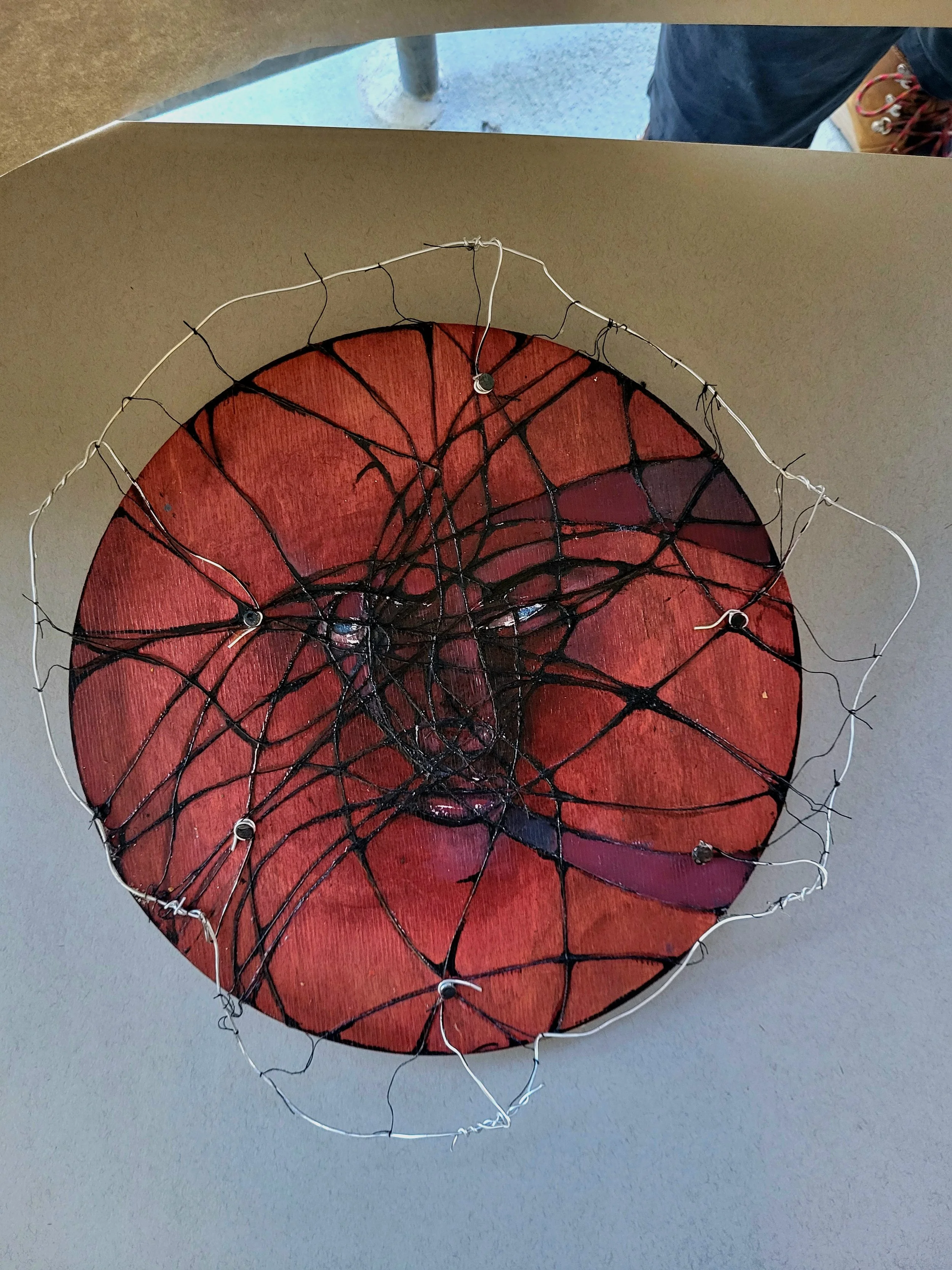 I used wood, gloss, tinted gloss, acrylic, nails, aluminum wire, cotton thread, and glue.