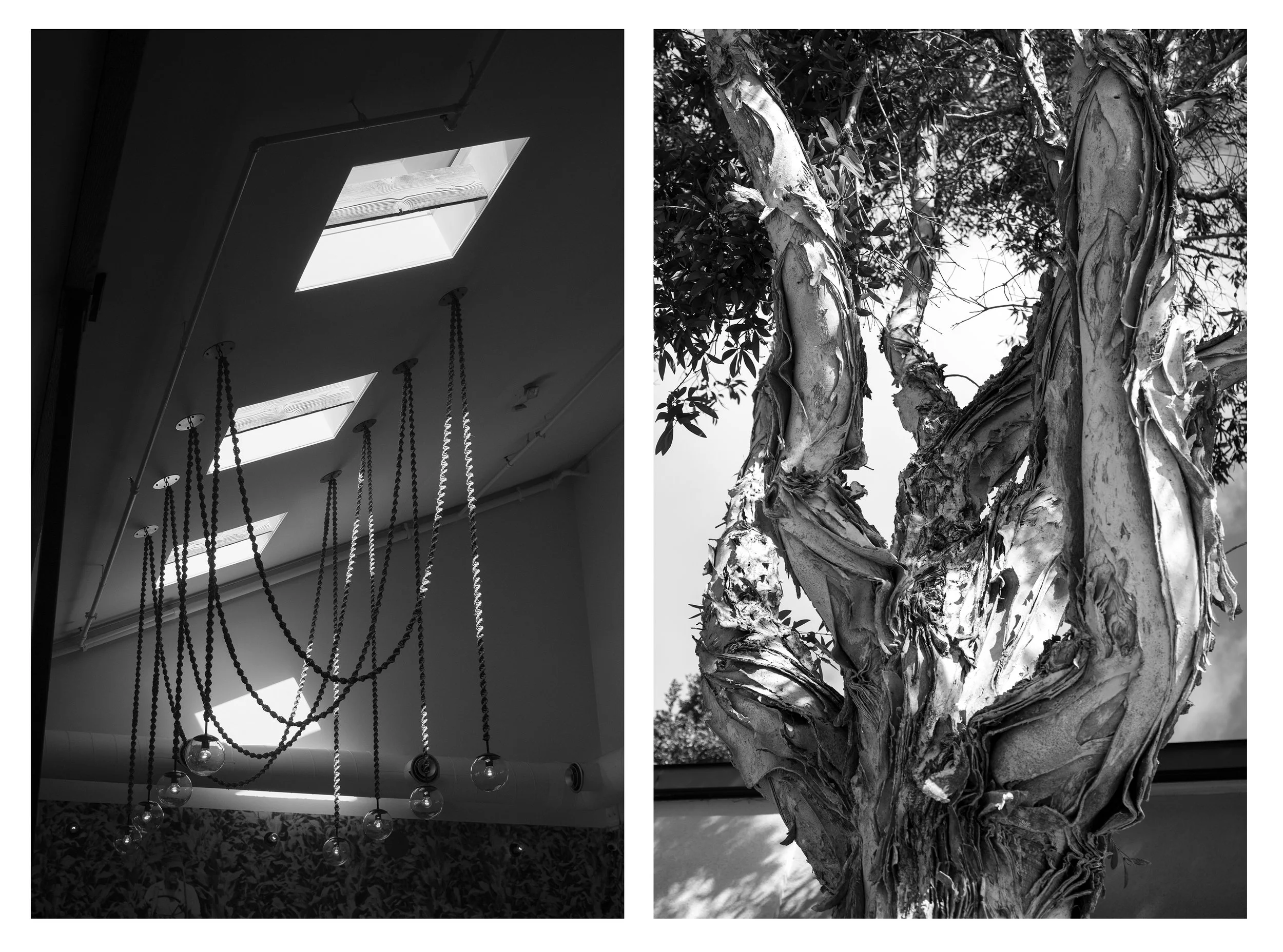 This diptych is meaningful to me because it was a way for me to express my creativity through black-and-white photography. Even though the subjects are different, they pair well together because of the high contrast and the mimicking movement of the curves in each image. The swooping of the rope of the light echoes the natural curves in the bark of the tree. They mimic each other visually. Both of the images were taken during midday, so the light was bright, which is why I was able to create a high contrast image. The pairing of these images felt natural because of the light and shadows, since they all speak to each other. This shows that beauty is everywhere, whether man-made or natural.