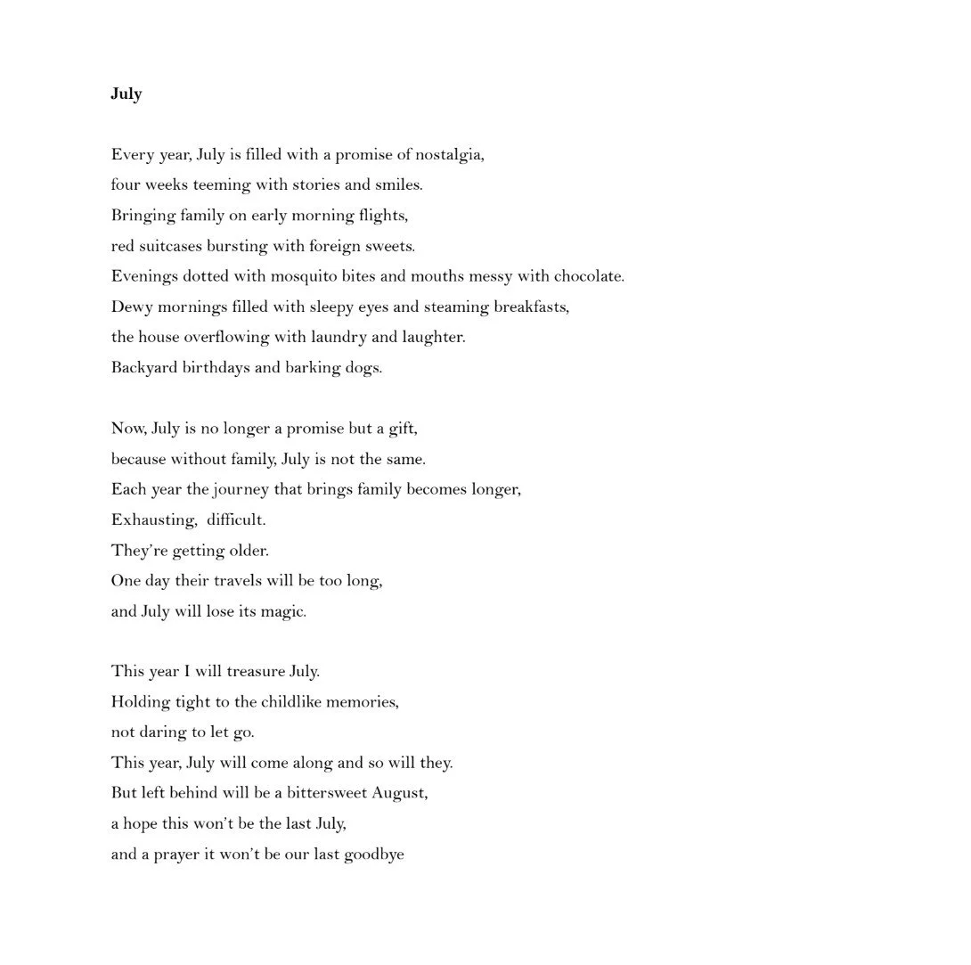 Summer has always been an incredibly important time of year for me. It’s when my grandparents travel to California from Australia, and bring back a slice of the country my father calls home. Four weeks in July was once a promise. Four weeks spent telling stories and laughing at jokes. The house is full and happy. Unfortunately as I get older summer has become a gift rather than a promise. Every July has become more like every other July, and sometimes summer loses its luster. Every year I hold out hope that the summer will hold childhood's magic and fill my house with laughter again.