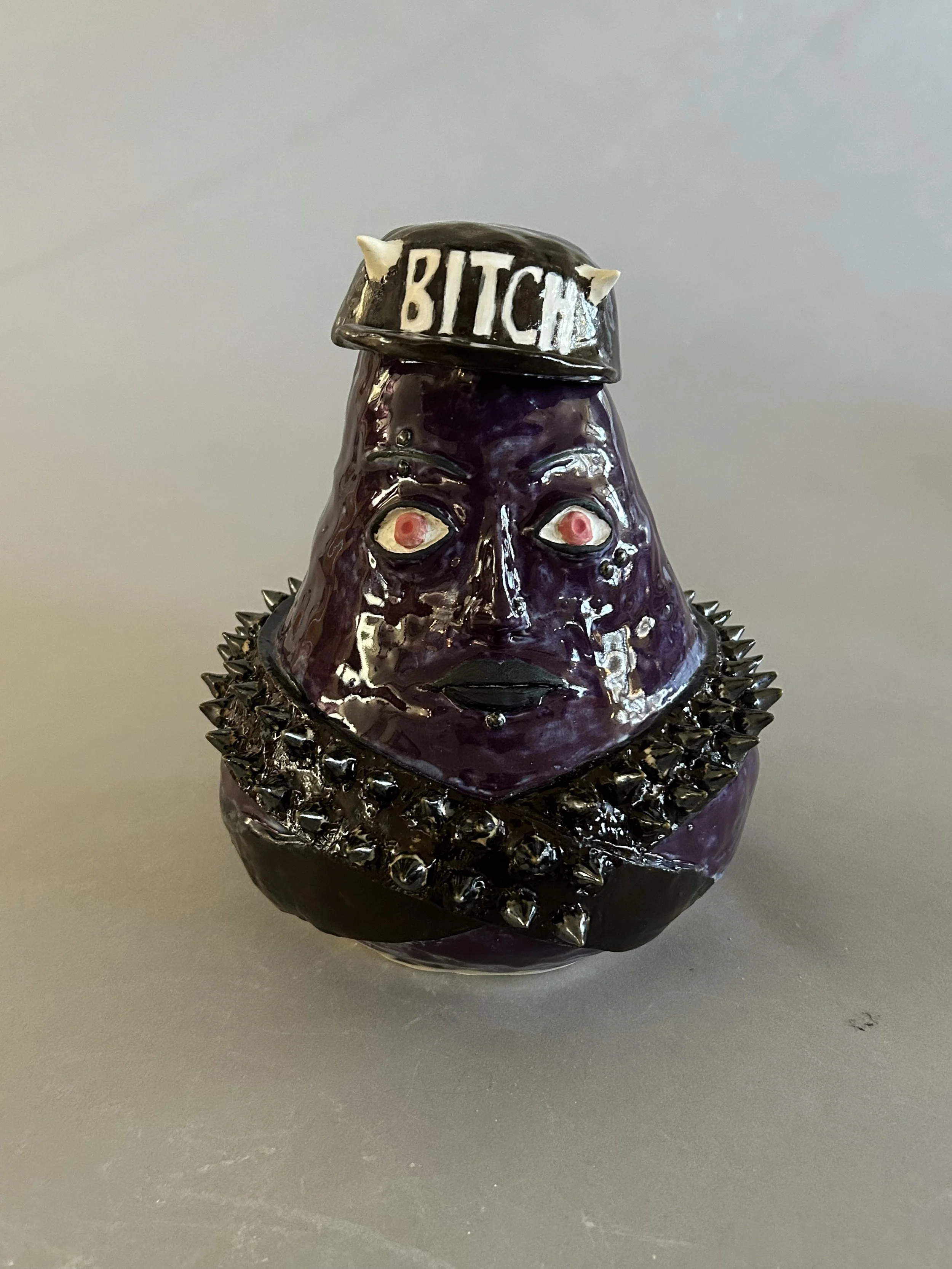 I want my viewers to see that it's supposed to be a loud and fun sculpture, and I showed that in the hat and the spiked belt. I decided not to go for the safe option and wanted to push myself to take mild risks by putting ‘’bitch’’ on my hat and adding sharp spikes. My inspiration was from spiked belts and the 2000s swag era. I thought it would be fun to make something related to that time. My progress on my sculpture was to not rush myself when I like a piece, because when I really like a piece that I'm making, I rush it as much as I can so it fits my vision of it faster.