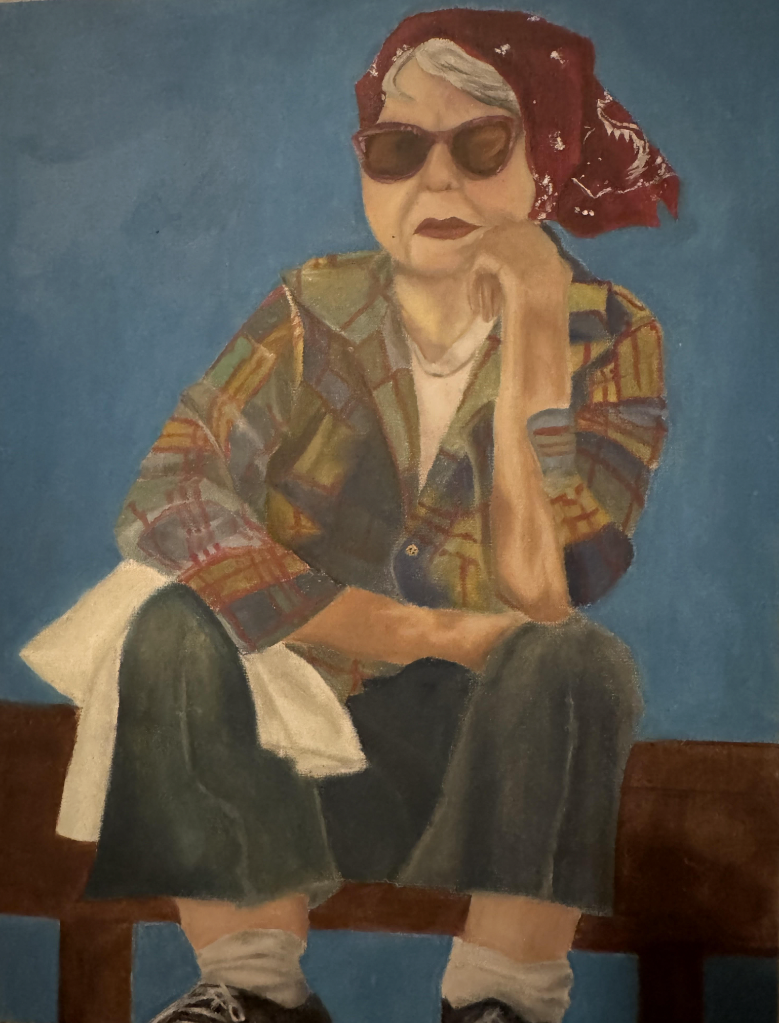 This piece began as an elderly figure sitting down, but it slowly turned into something more. As we grow older, we tend to lose a lot of our self-expression, our unique style, and flair to fit into standards. Each brushstroke and color I added was a small celebration of personality that doesn't change with age. Every color of oil paint blended seamlessly, just like the years of our lives tend to do. I felt a lot of emotions while painting this, impatience, happiness, and amusement, as this figure had swag that outmatched my own. To me, this piece is a tribute to everyone who refuses to be defined by standards, and to the beauty of growing old with flair.