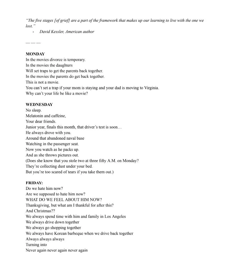 This poem is about a big shift in my life that happened only one week ago. I wanted to write a poem that was true to my experiences and vividly captured my feelings, but also a poem that stayed concise. Many things can happen in one week.