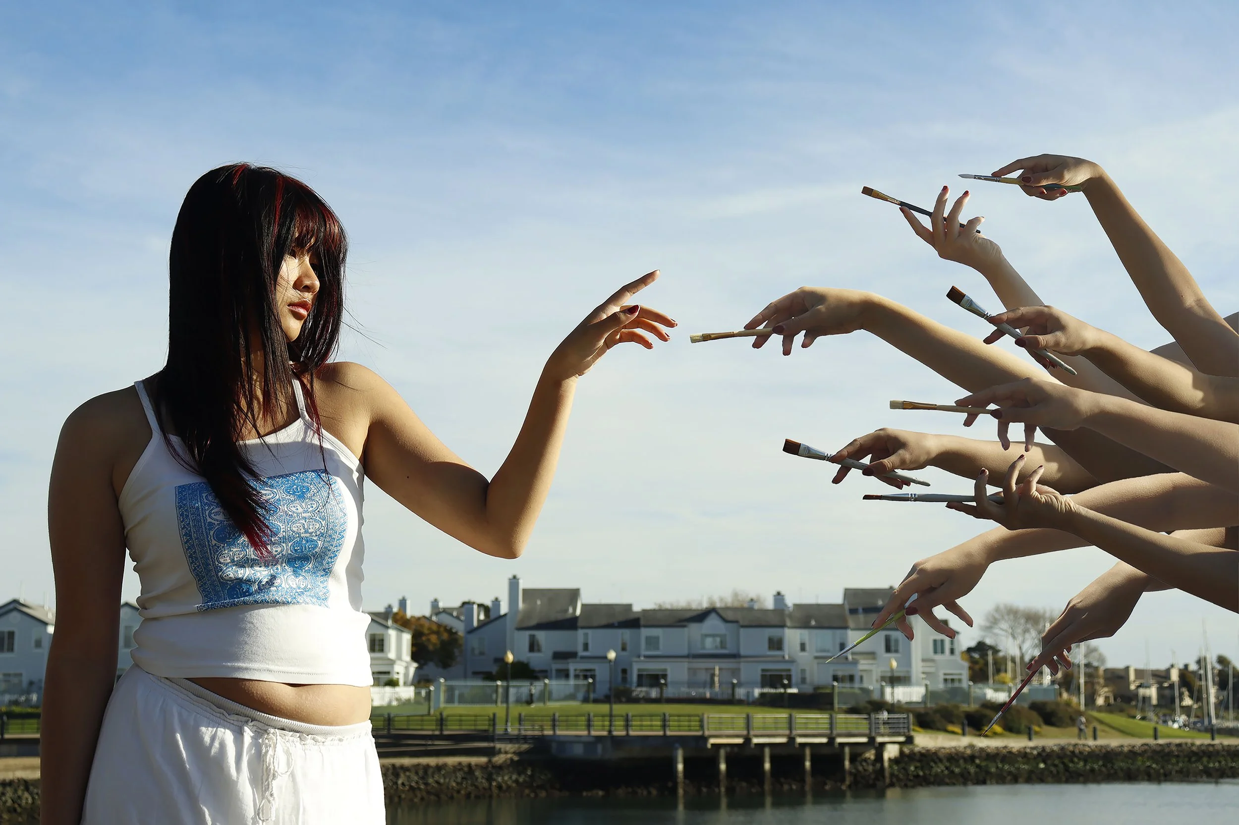 Touch of Life represents the symbiotic relationship between an artist and their art. It is a take on Michelangelo's “The Creation of Adam” where God breathes life into Adam, the first man. Here, the artist literally brings life into their art by creating it; yet, the art also brings meaning and purpose into the artist's life. This mutually beneficial relationship is shown as the paintbrush and the hand both reach for each other.