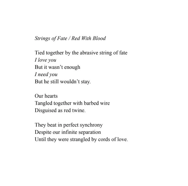 This collection explores different relationships through short, emotionally-driven poems. I wanted to write about different people I love or have loved, as well as the relationships I have with places, in styles distinct to both them and the way our lives were together. Relationships are a common theme in writing, but I made this collection unique by studying varieties of them in a concise collection.